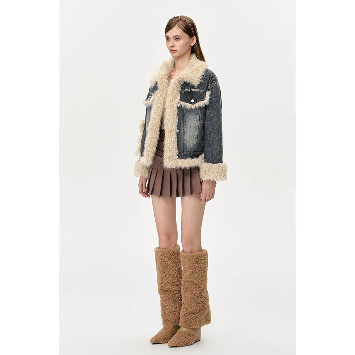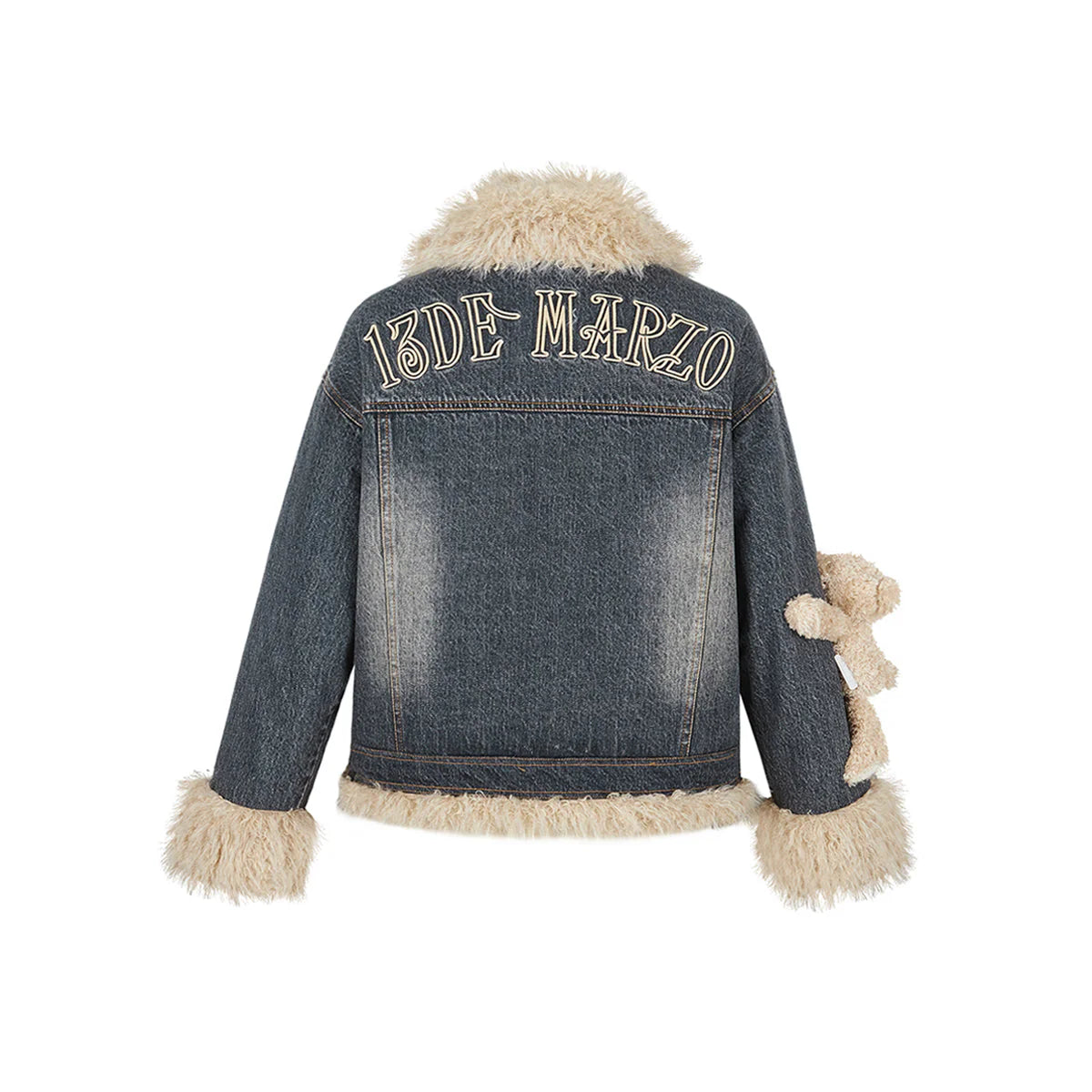13DE MARZO DOOZOO FLEECE PATCHWORK DENIM JACKET BLACK