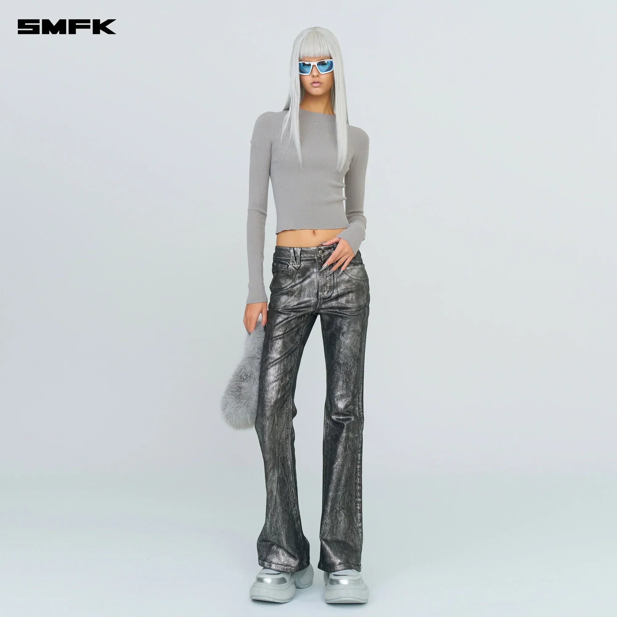 COMPASS HUG TURTLENECK KNIT SWEATSHIRT IN GRAY
