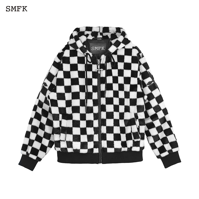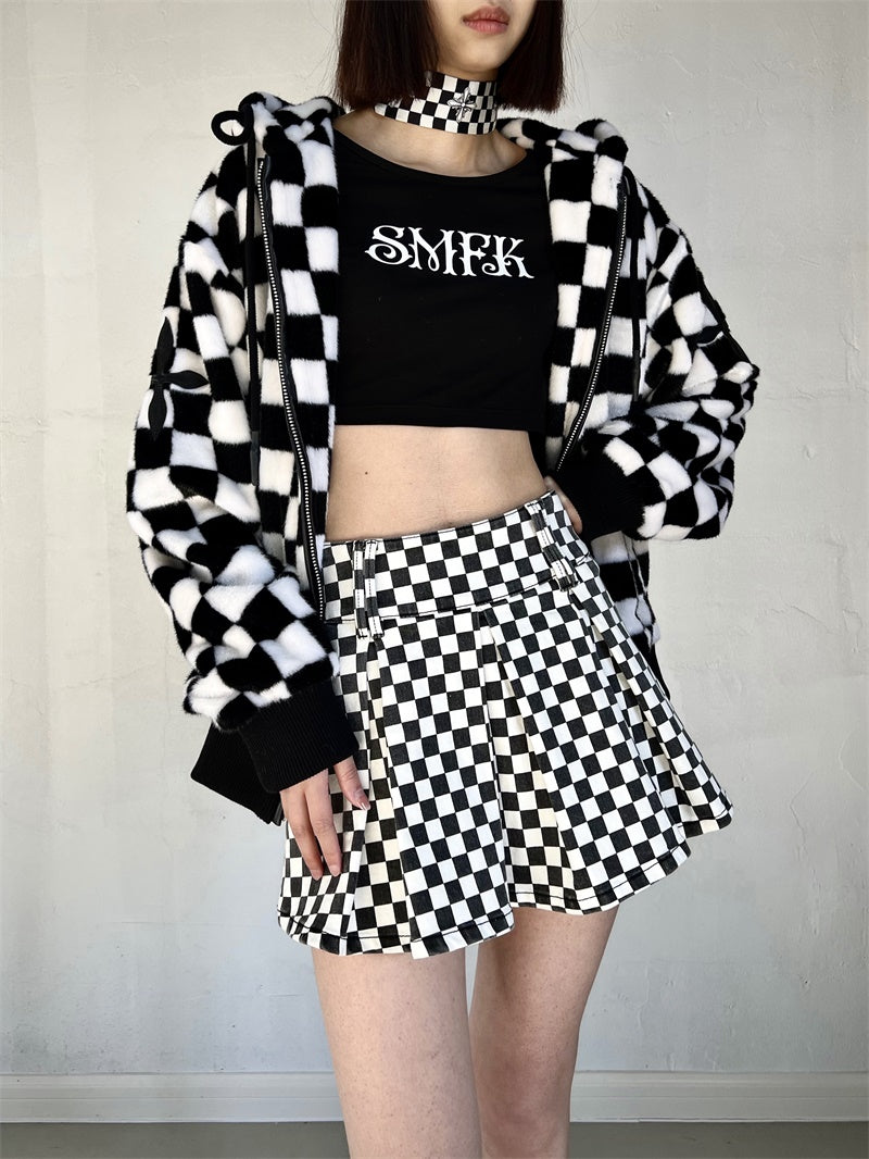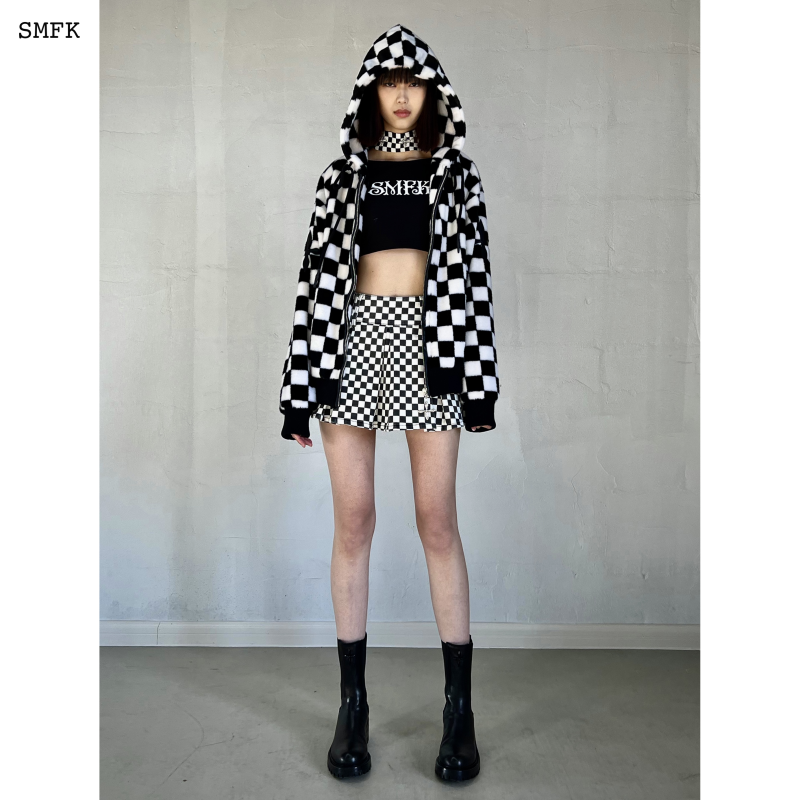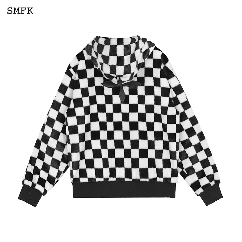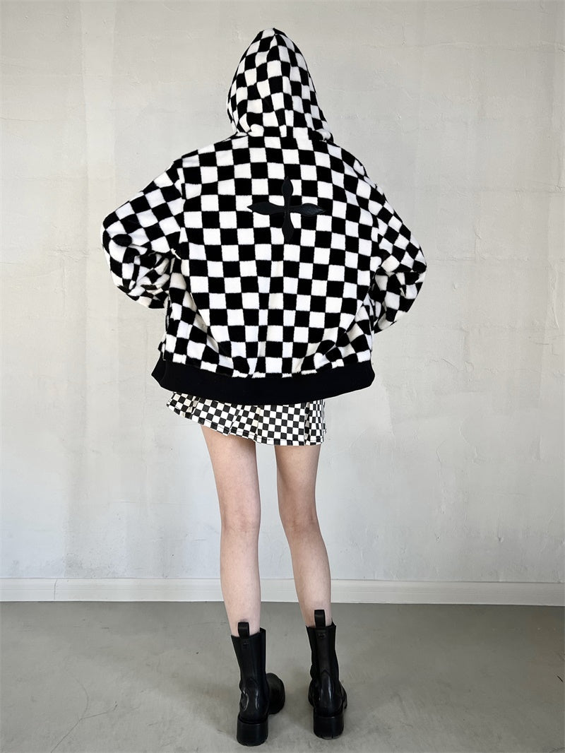BLACK AND WHITE CHECKED ZIP UP HOODIE CH005BW