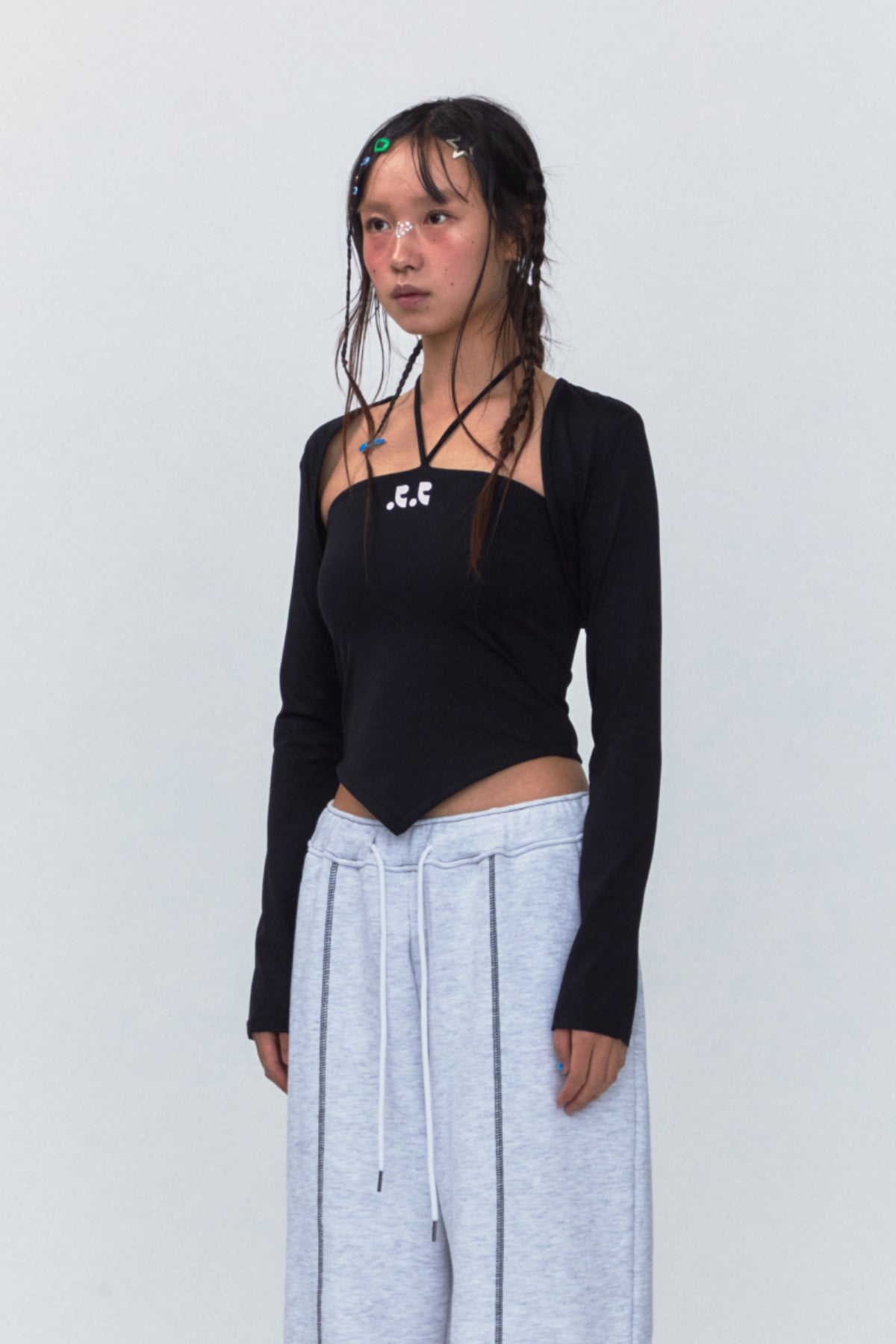 REST&RECREATION RR BOLERO + HALTER TOP - BLACK