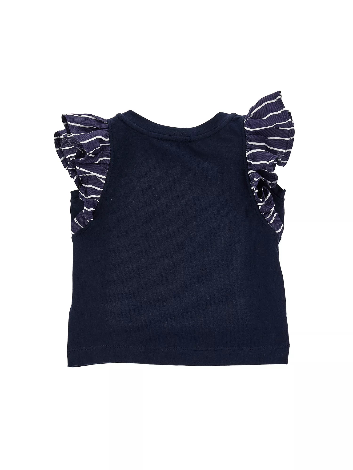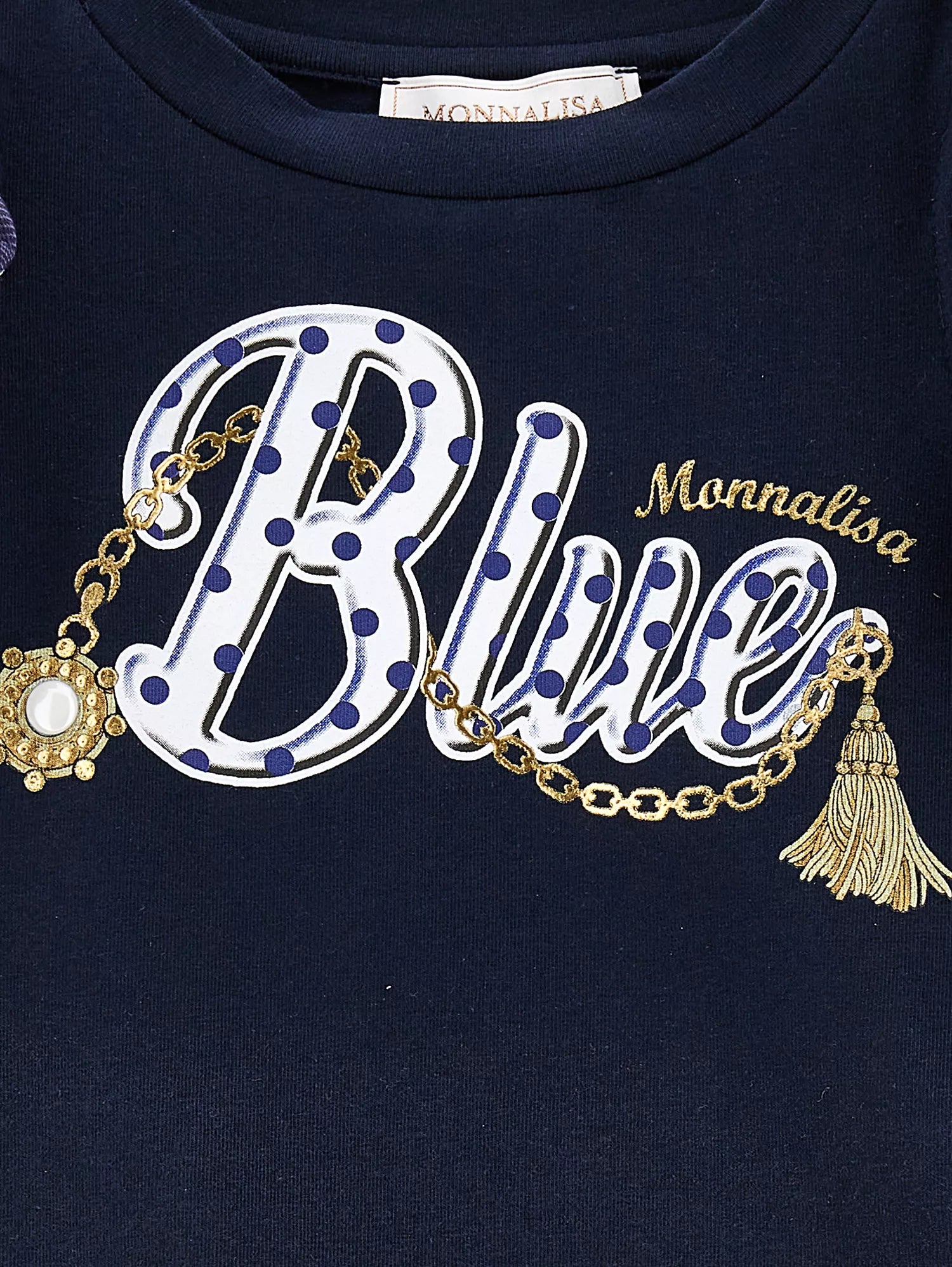 MONNALISA JERSEY T-SHIRT WITH SAILOR STRIPE SLEEVES