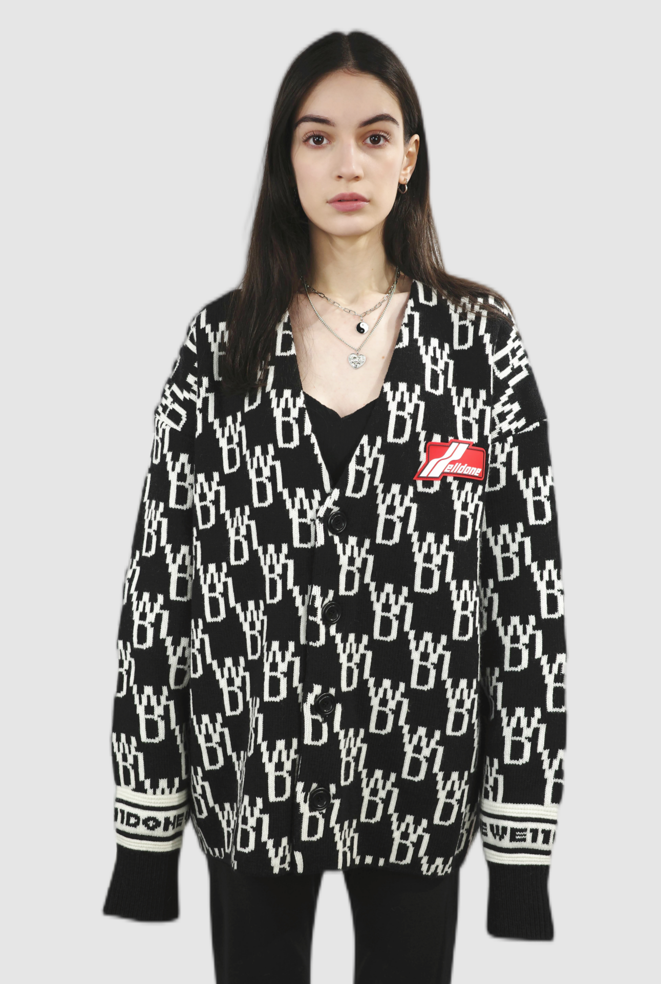 Knit wool and nylon-blend cardigan. Jacquard knit logo pattern throughout.