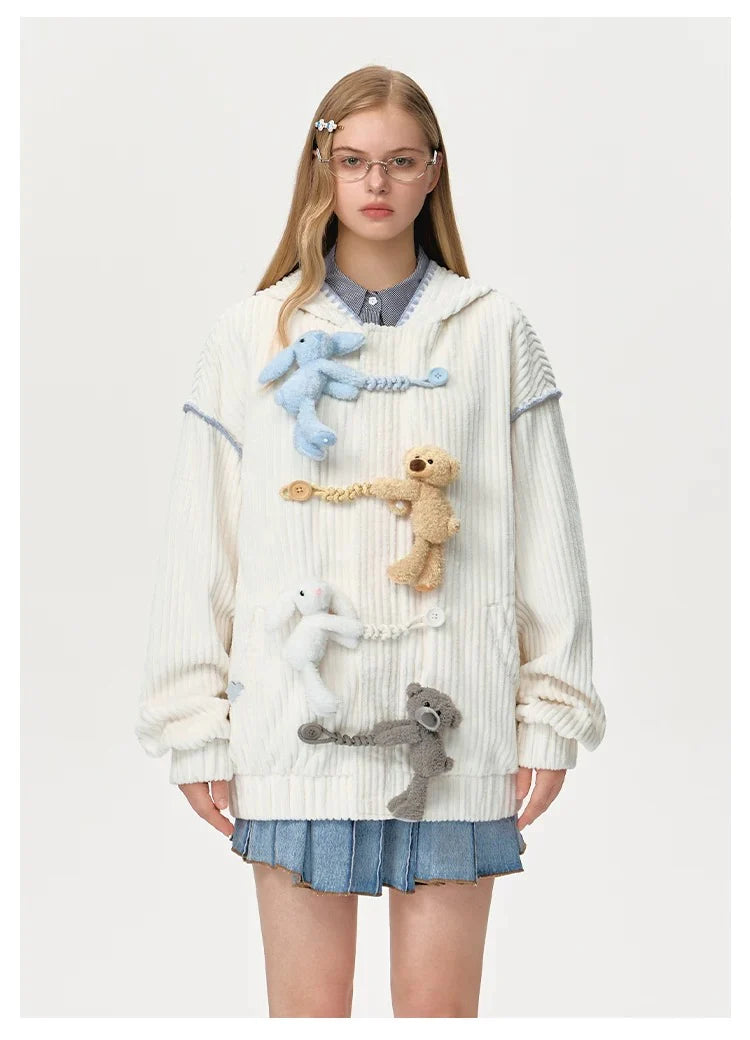 13De Marzo Friends Hangout Corduroy Zip Hoodie White