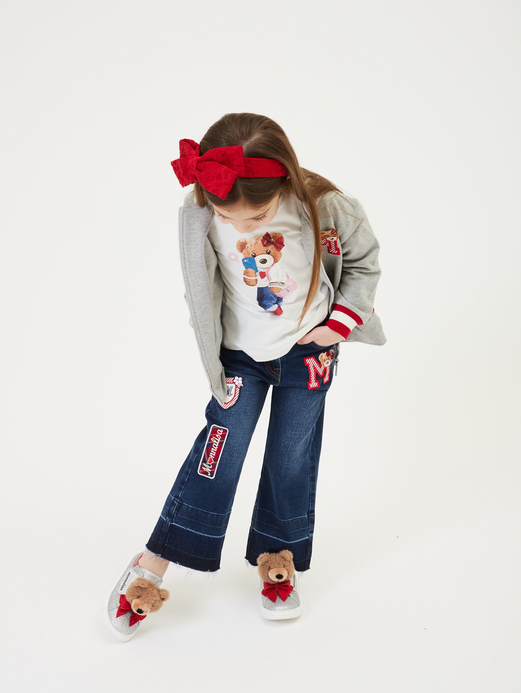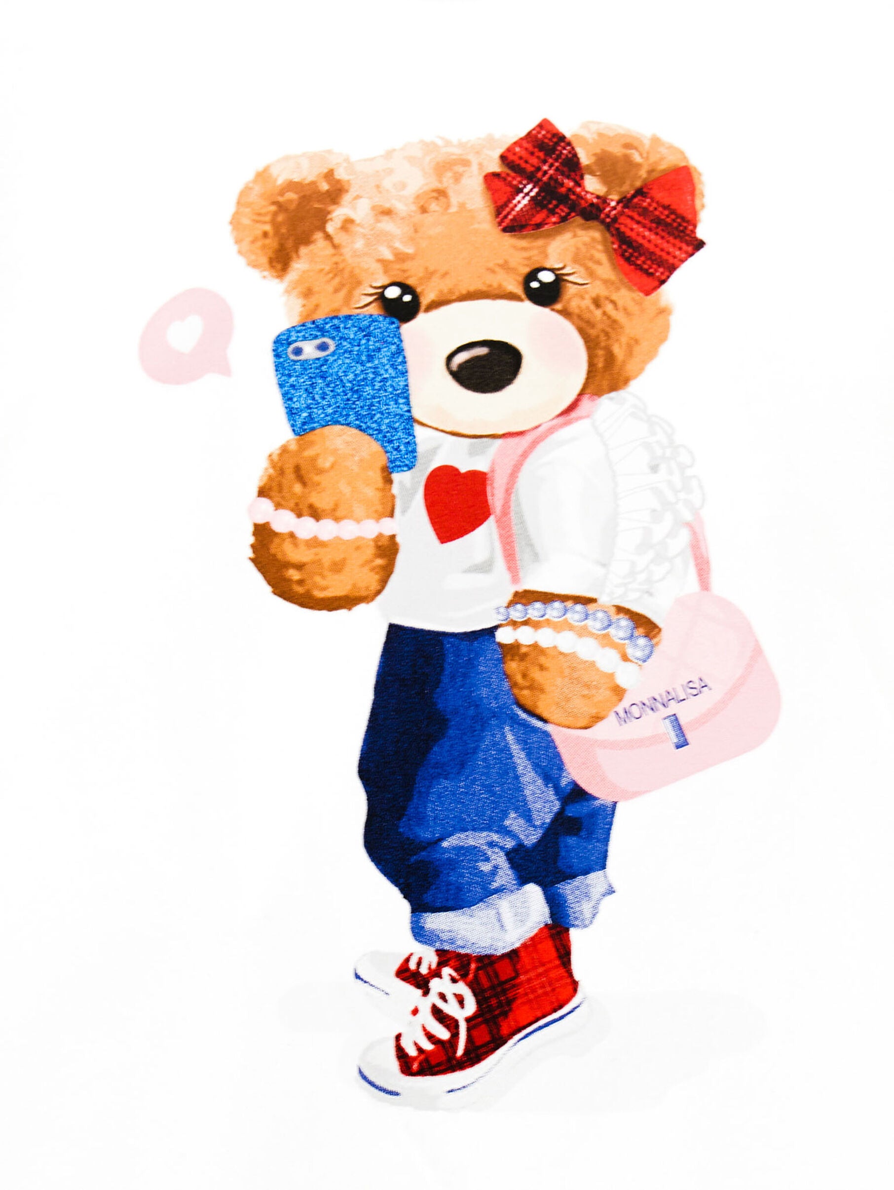 MONNALISA LONG-SLEEVED TEDDY COTTON T-SHIRT