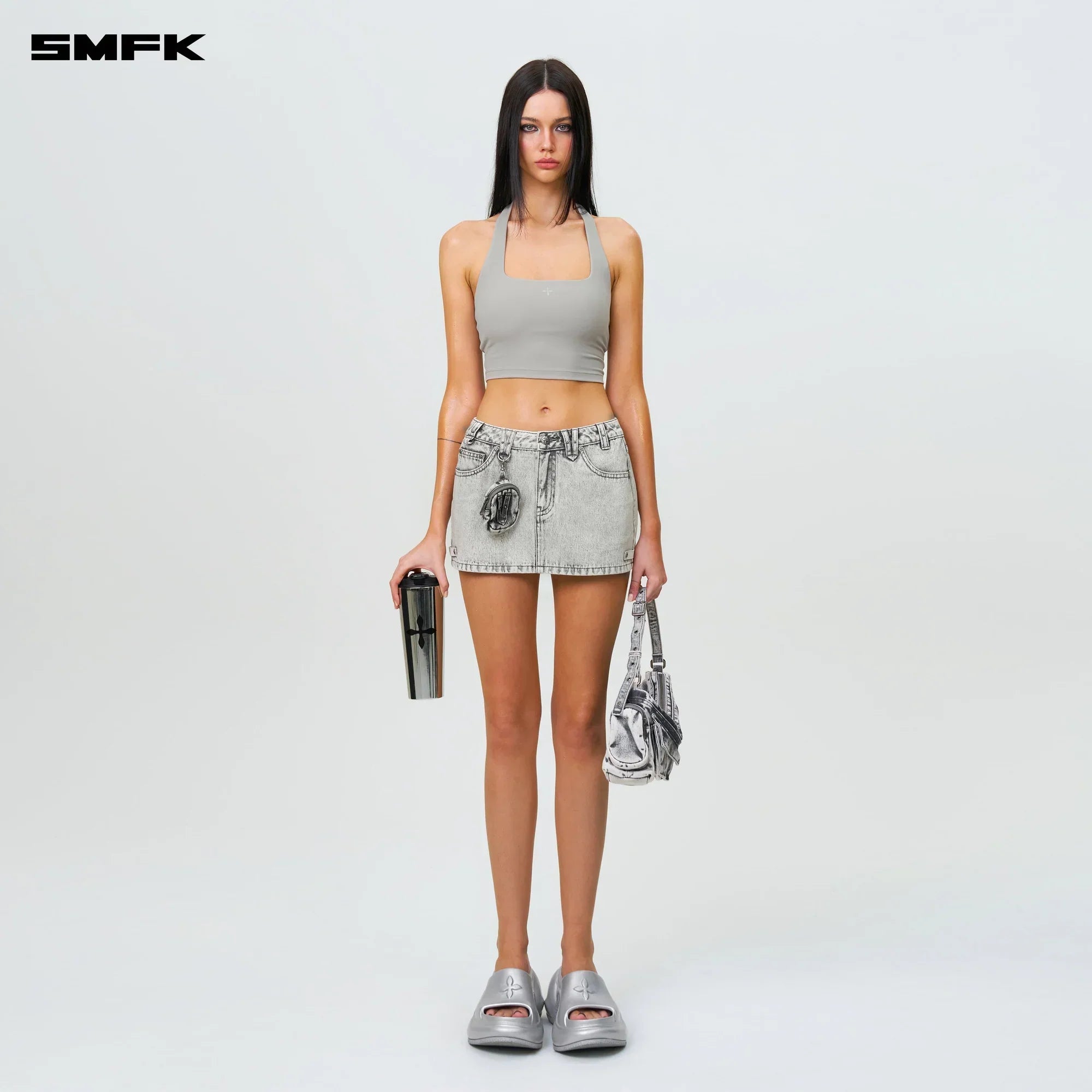 COMPASS WILD TARPAN DENIM MINI SKIRT GRAY