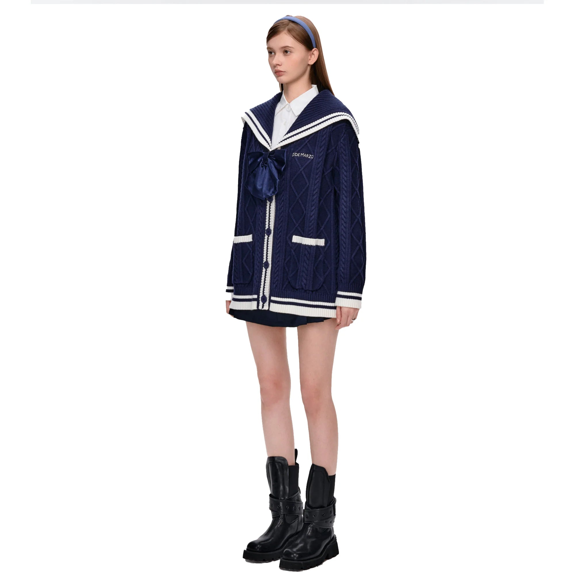 13DE MARZO Navy Style Knitted Cardigan in blue