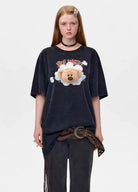 13DE MARZO Bear Anime Smog T-shirt