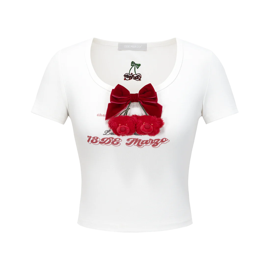 13DE MARZO BEAR CHERRY BOWKNOT TEE