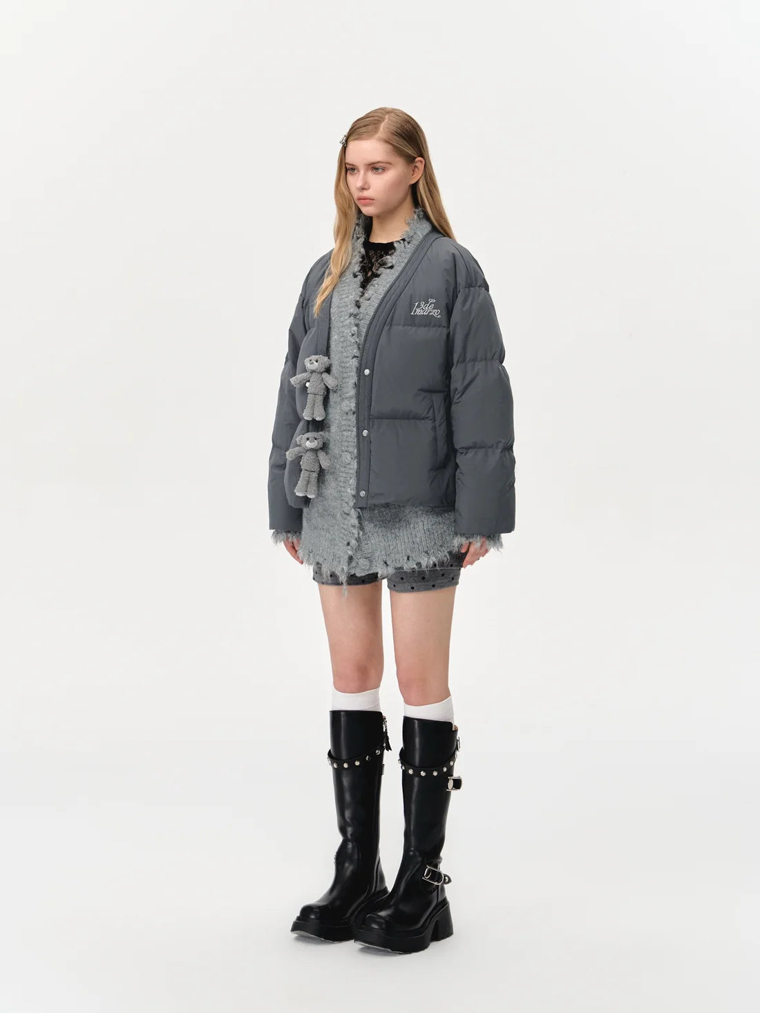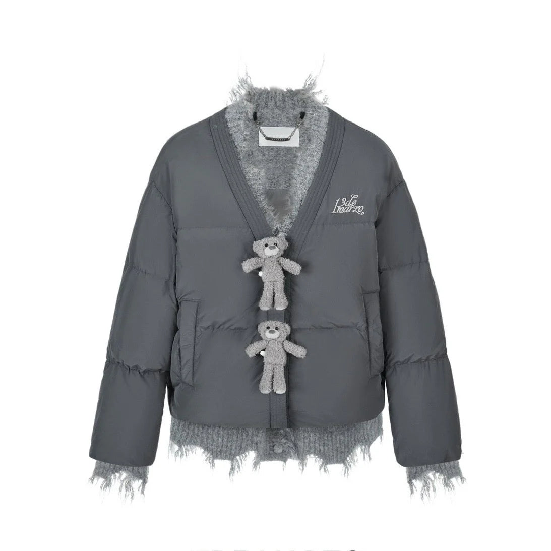 13De Marzo Bear Rough Edge Down Jacket Dark Grey