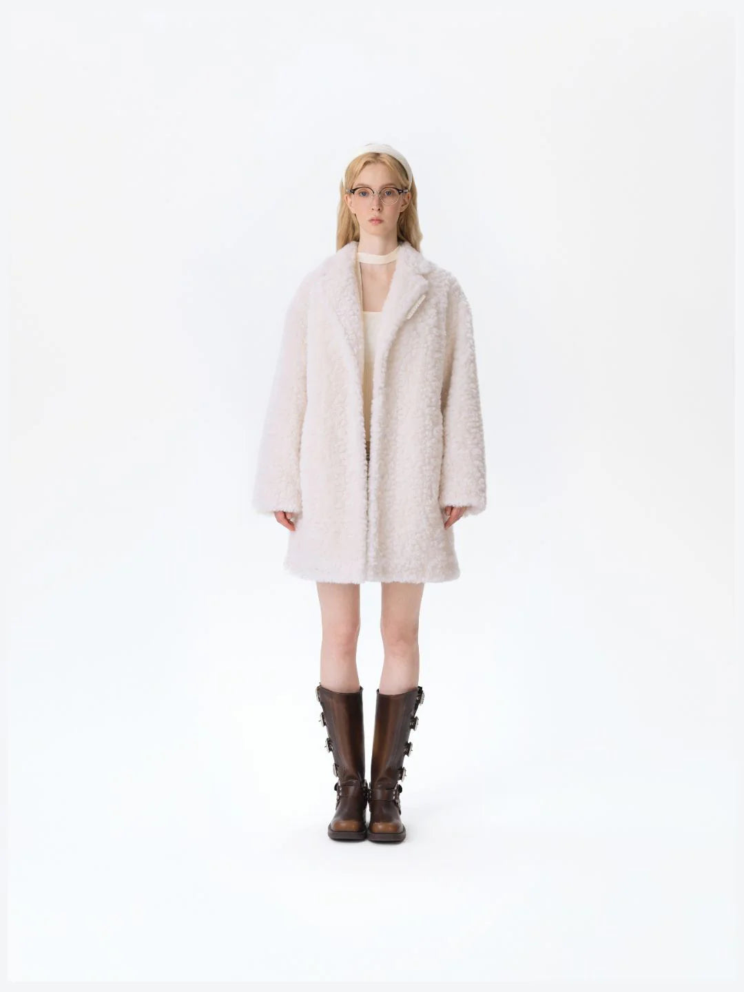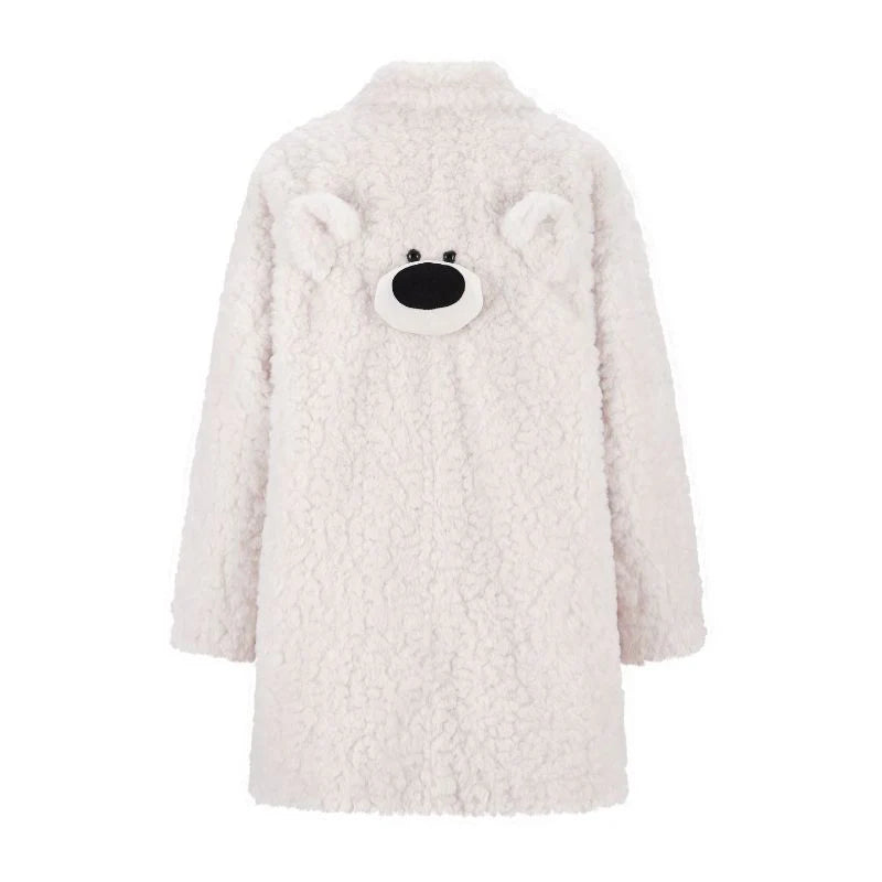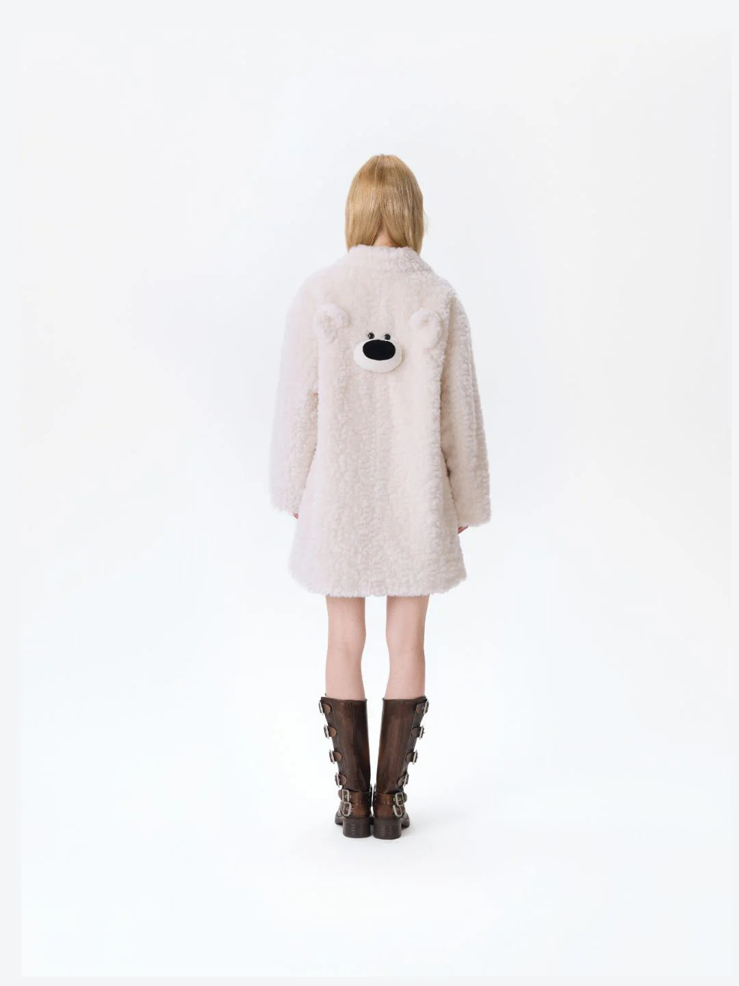 13DE MARZO Bear Fuzzy Long Coat Beige
