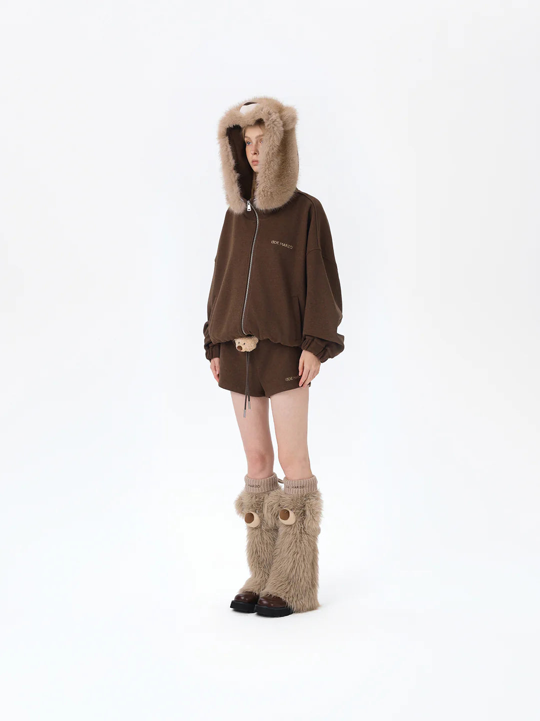 13DE MARZO Doozoo Zipper Hoodie Brown
