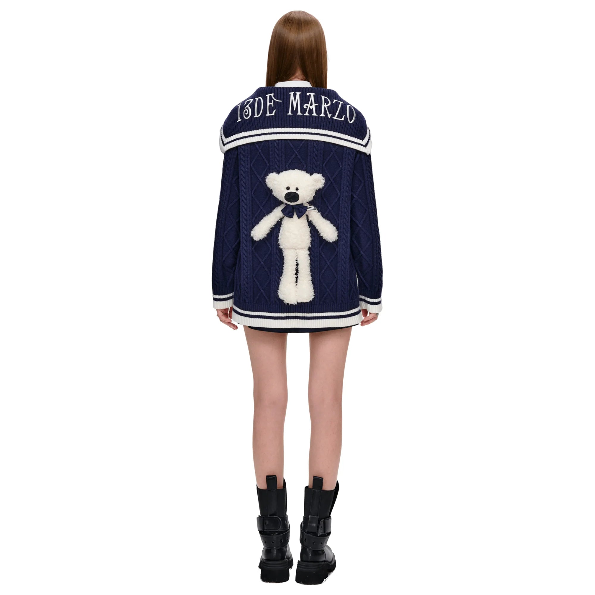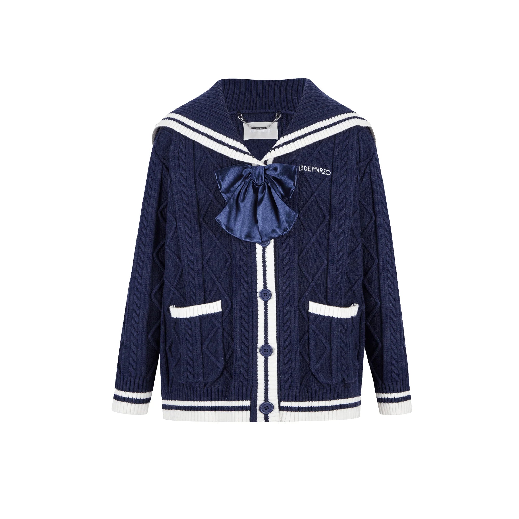 13DE MARZO Navy Style Knitted Cardigan in blue