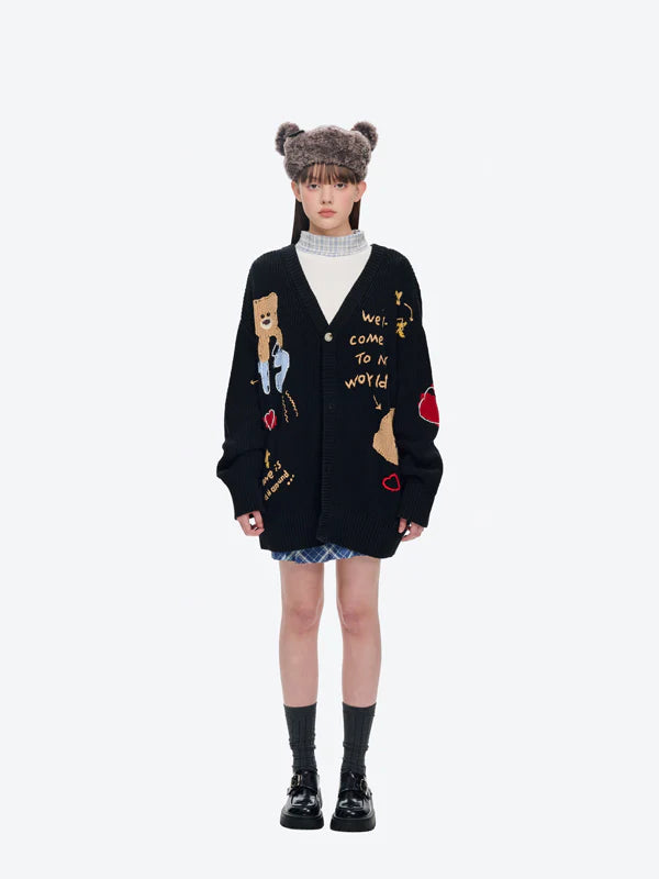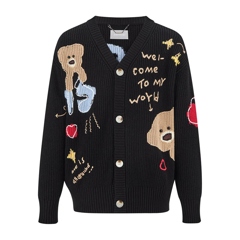13DE MARZO Doozoo Doodles Cardigan - Black