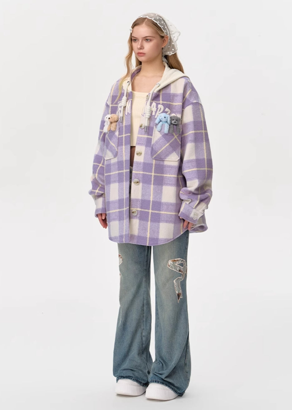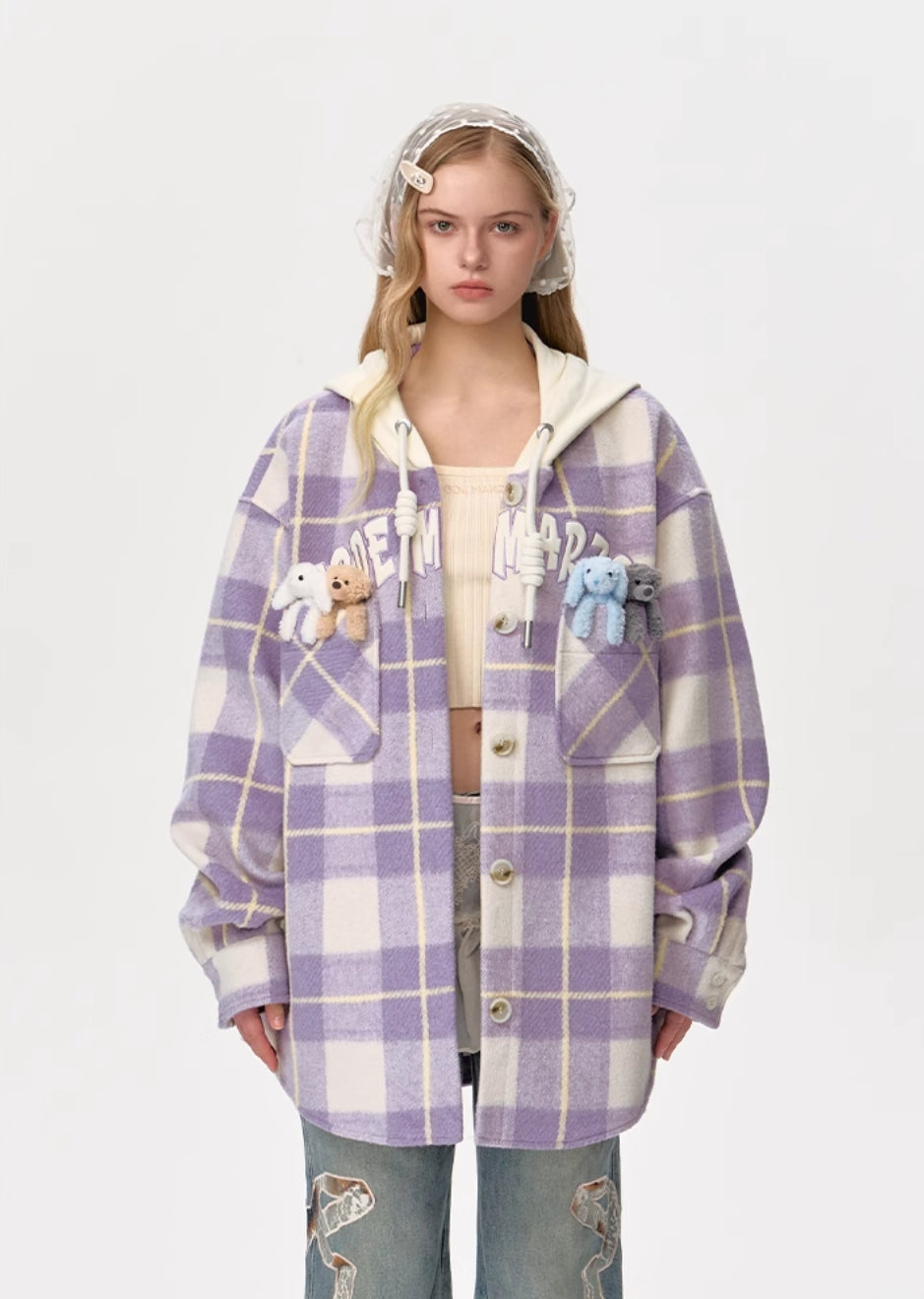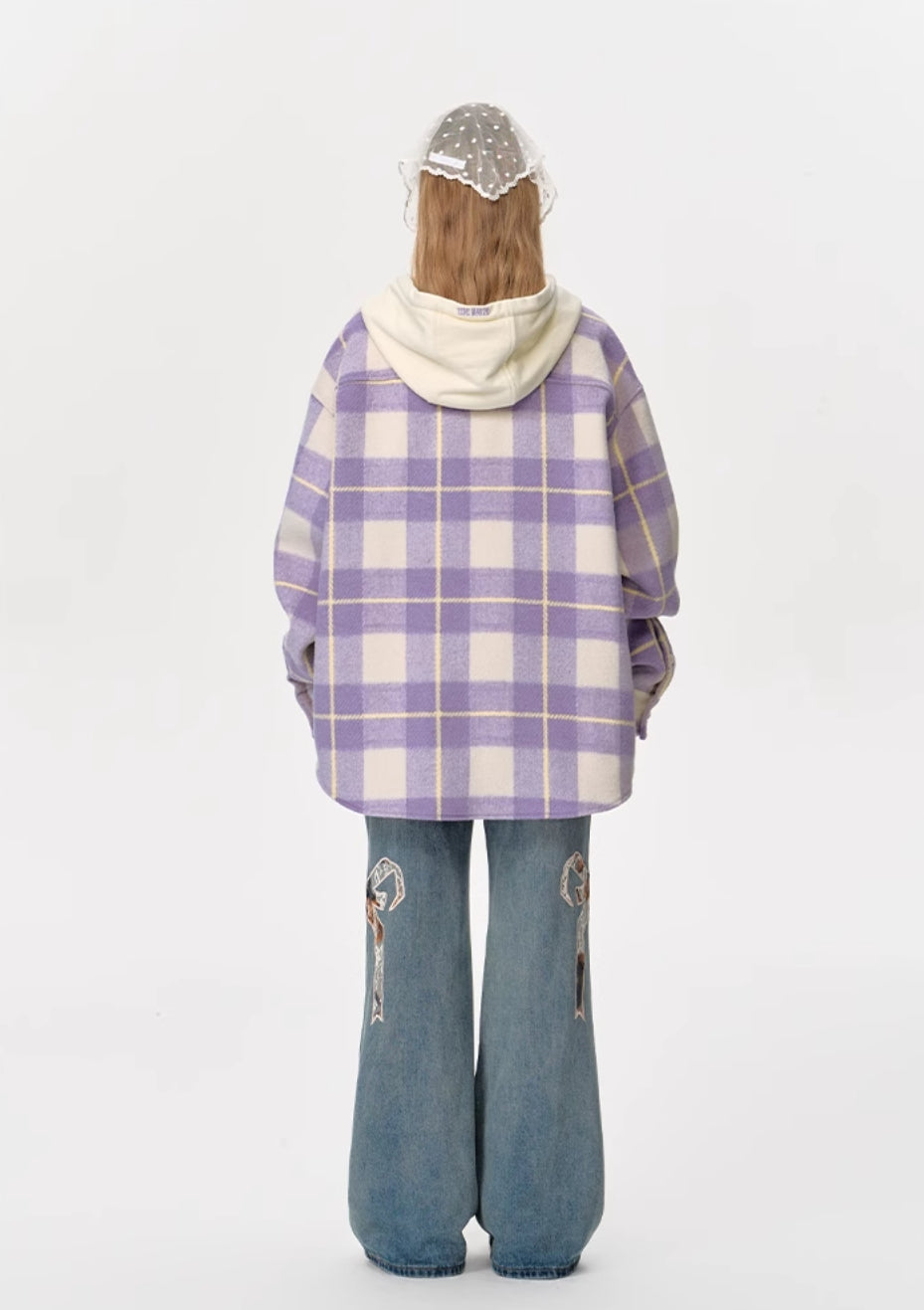 13DE MARZO PLAID WOOL SHIRT JACKET