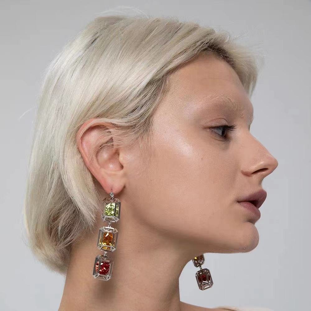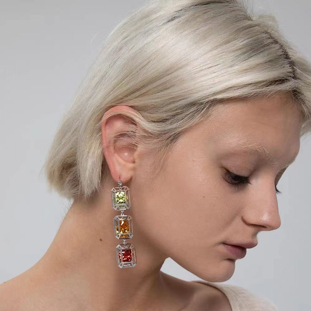 51 E JOHNSTERLING SILVER EARRINGS WITH TRICOLOR GEMS AND LONG FRINGE