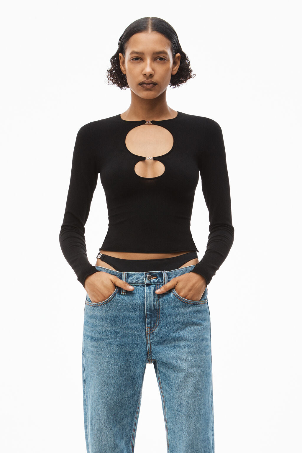 ALEXANDER WANG CREWNECK CUT OUT TOP IN COMPACT VISCOSE
