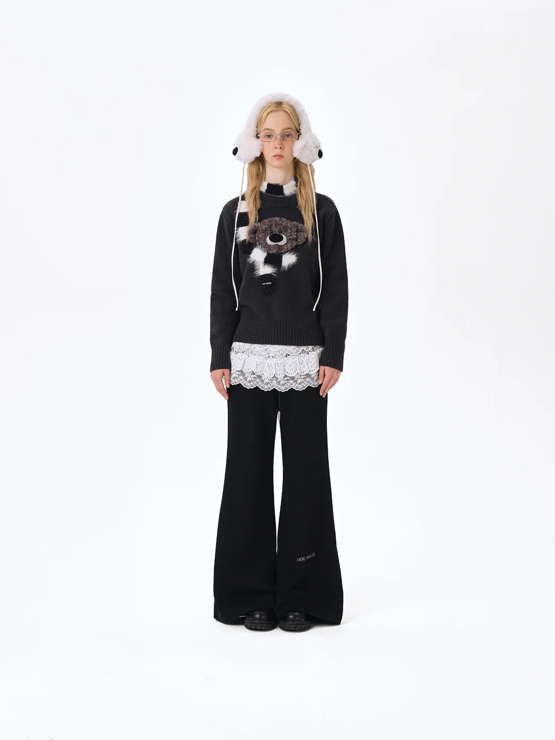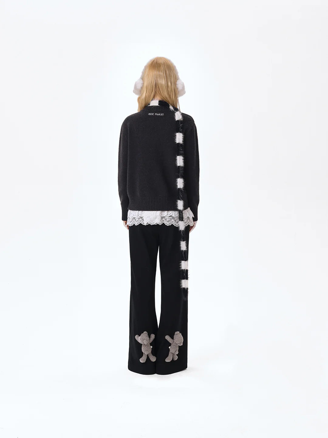 13DE MARZO Bear Thin Scarf Sweater Dark Grey
