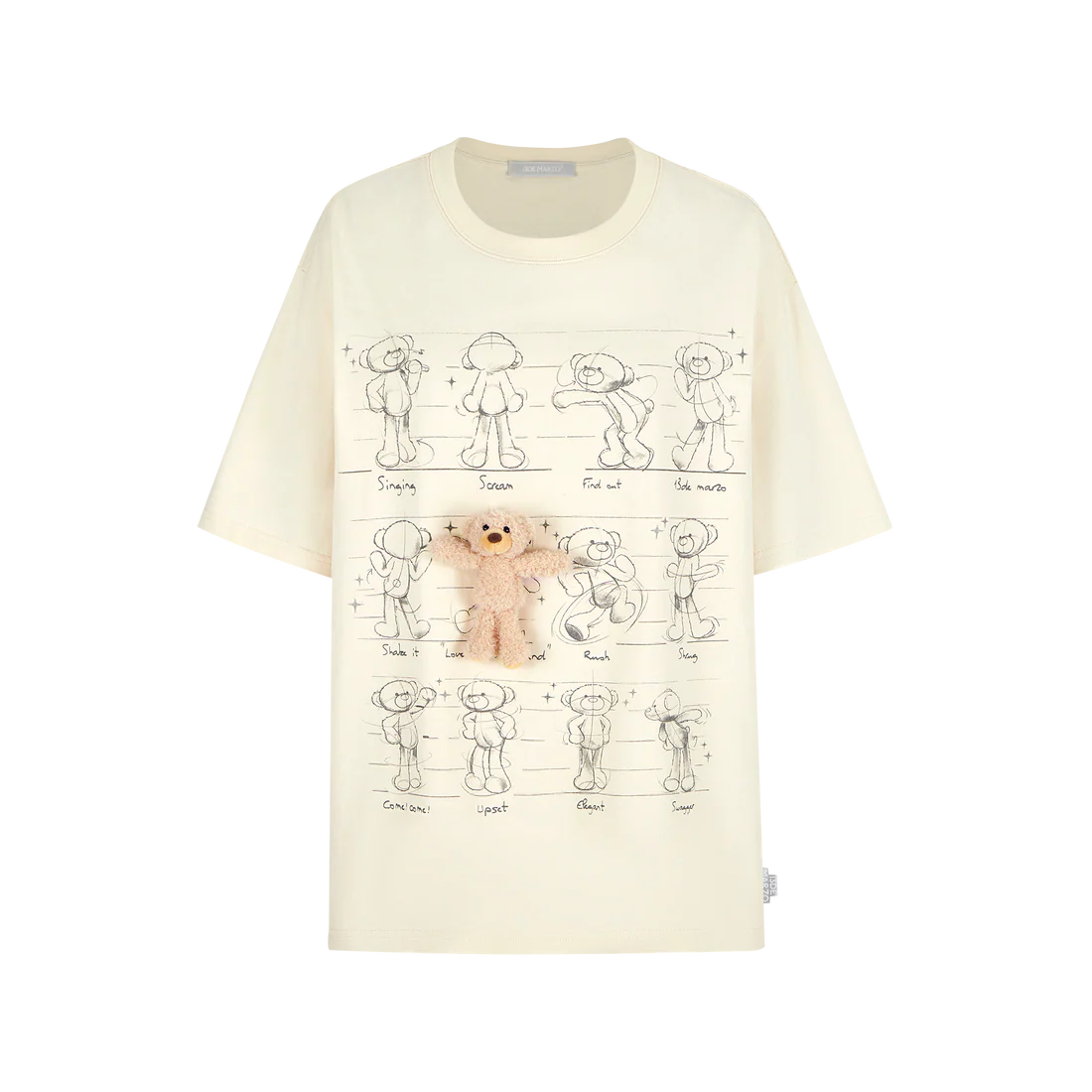 13DE MARZO Bear Movement Sketch T-shirt BEIGE