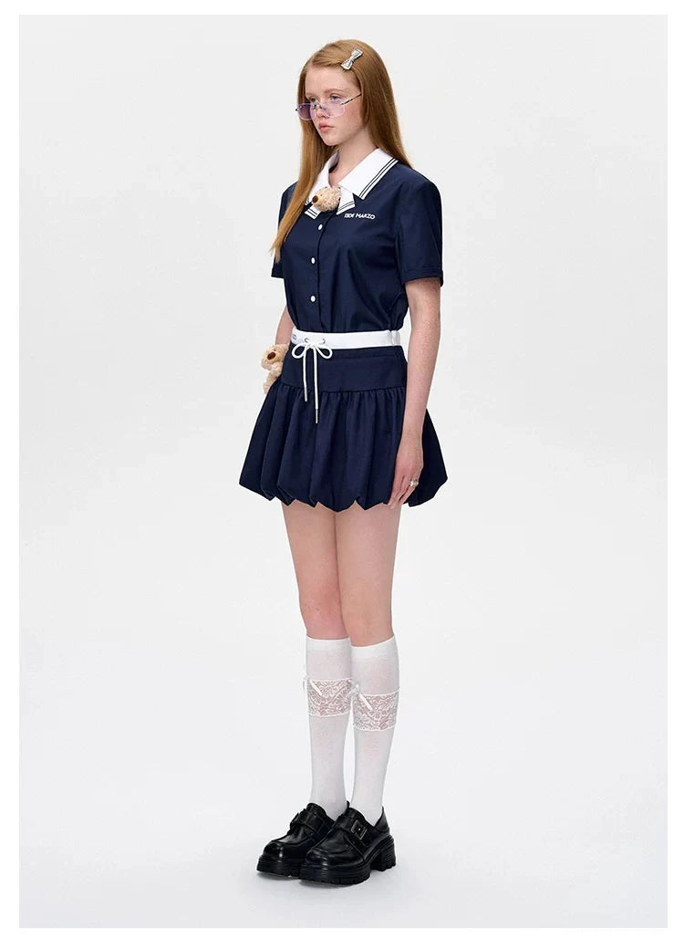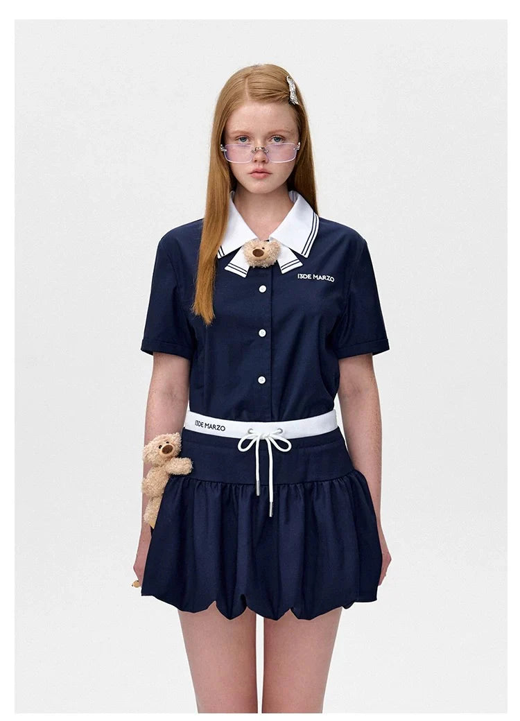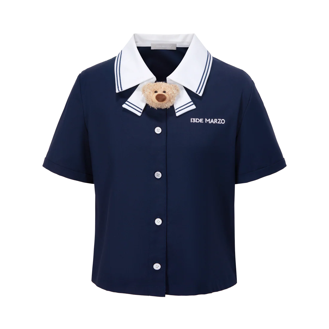 13DE MARZO Bear Sailor Collar Shirt NAVY BLUE