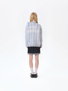 This cable-knit cardigan combines classic craftsmanship with innovative thread-blending techniques. Using traditional cable knitting, the design creates three-dimensional embossed rope patterns that enhance texture and depth. The thread-overlay technique produces a dual-color contrast between the inner and outer surfaces, giving the garment added visual weight and tactile richness.