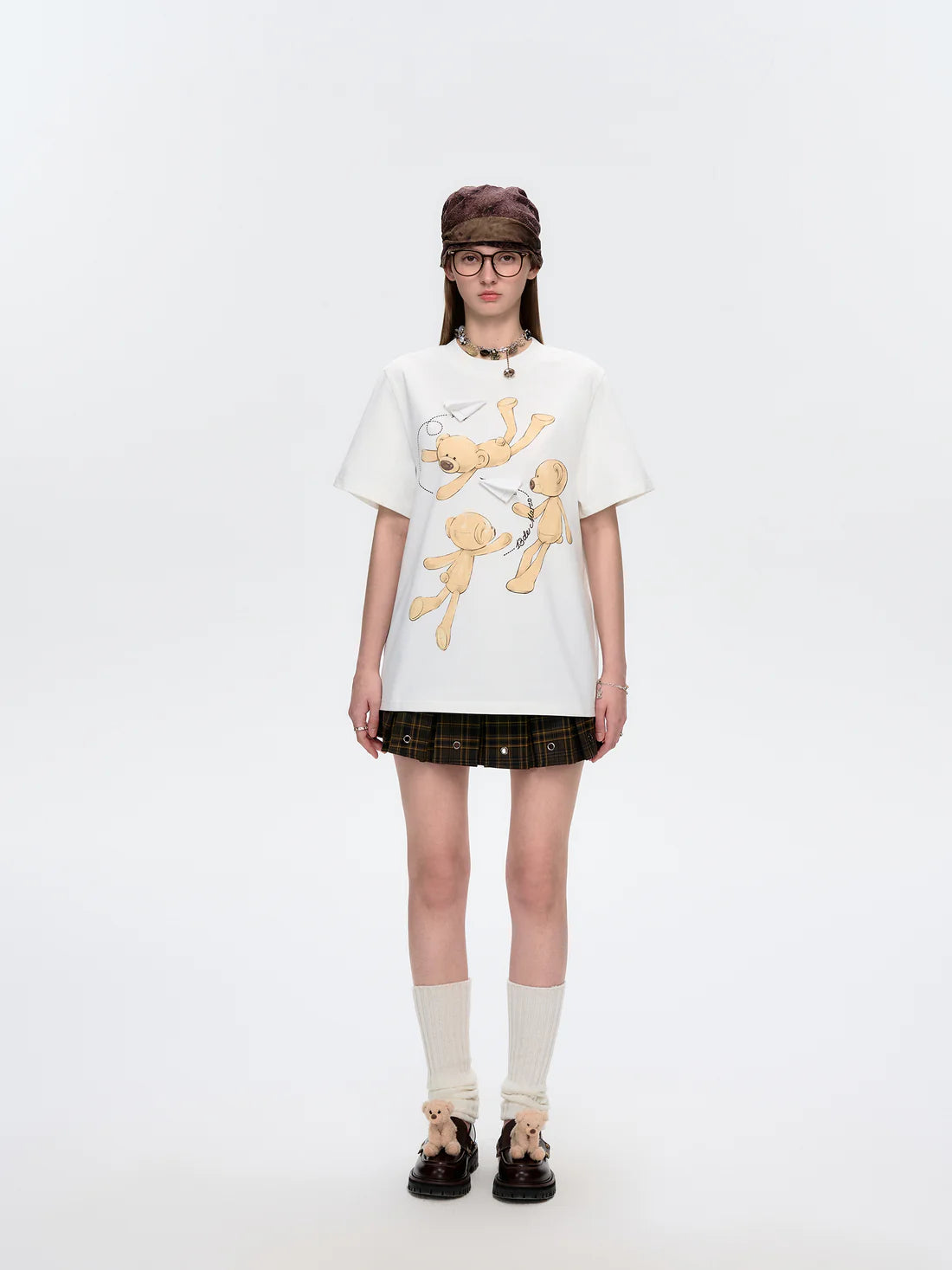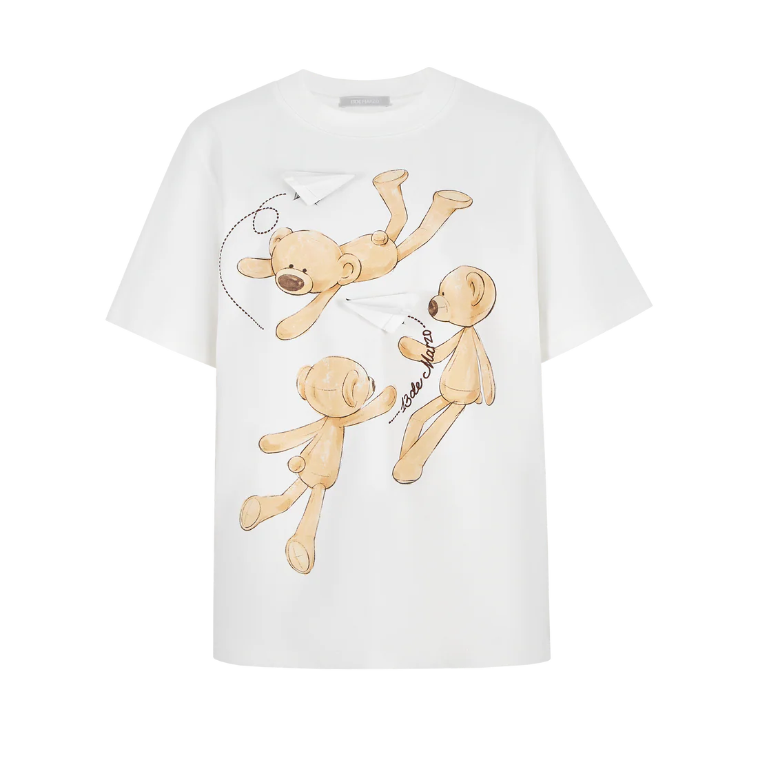 13DE MARZO Paper Plane Bear T-Shirt WHITE