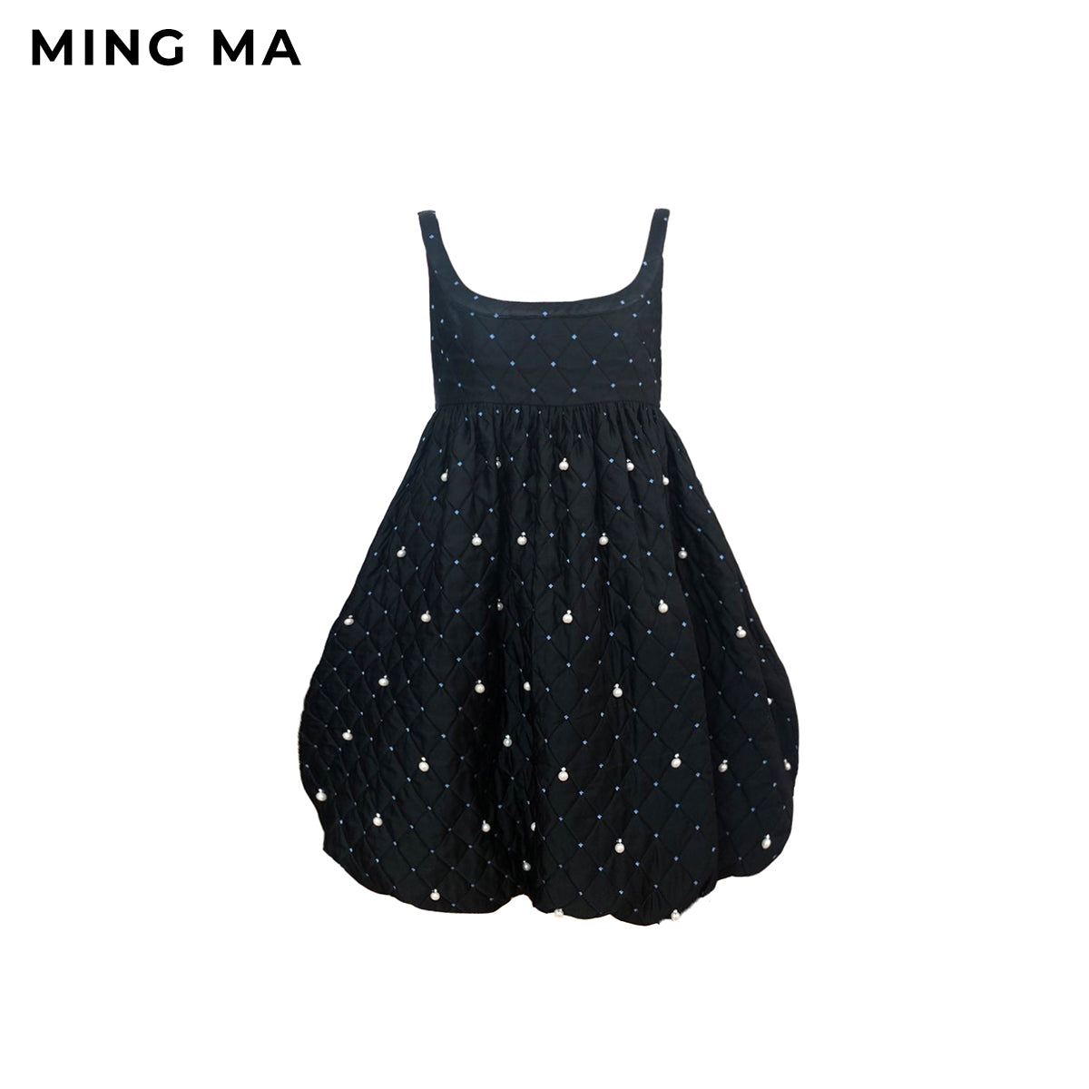 MING MA 2021 FW FLOWER-SHAPED PEARL RHINESTONE BEADED ROUND NECK CAMISOLE FLOWER BUD SKIRT