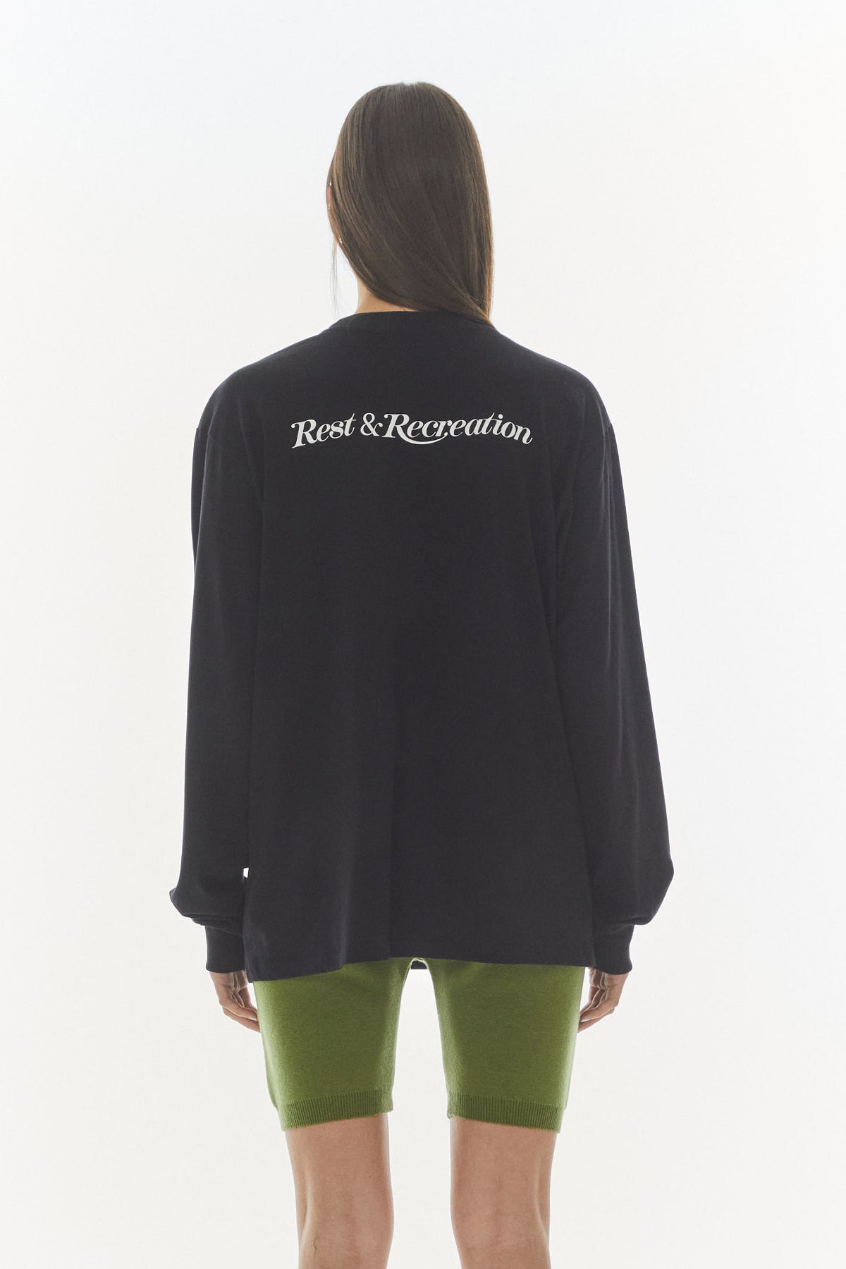 REST&RECREATION LOGO OVERSIZED LONG SLEEVE T-SHIRT - BLACK
