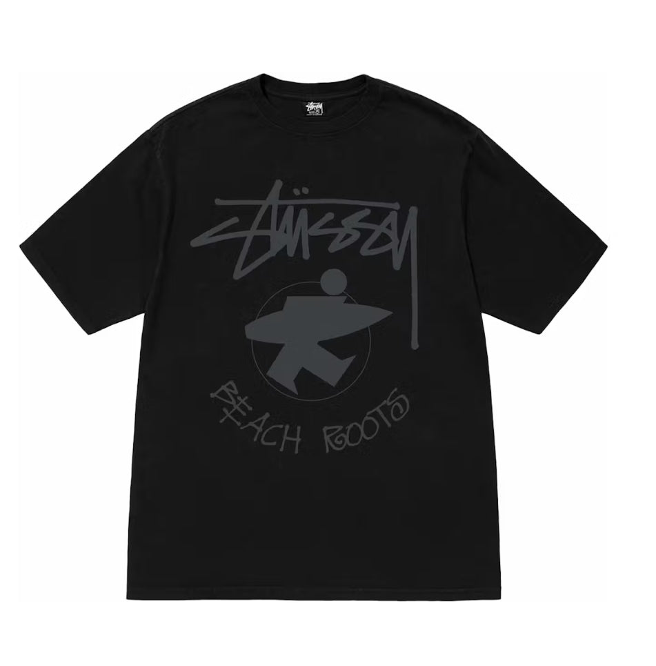 STUSSY BEACH ROOTS PIGMENT DYED TEE BLACK