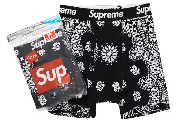 SUPREME HANES BANDANA BOXER BRIEFS (2 PACK) BLACK