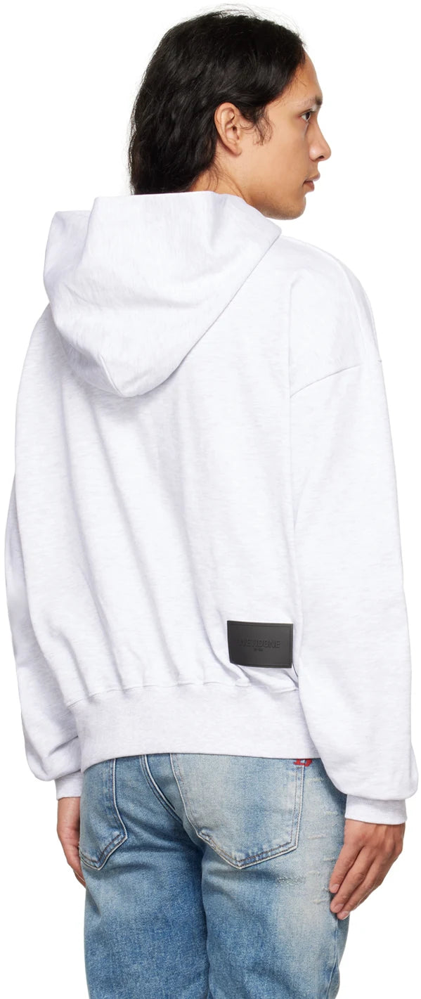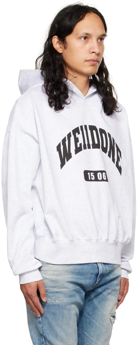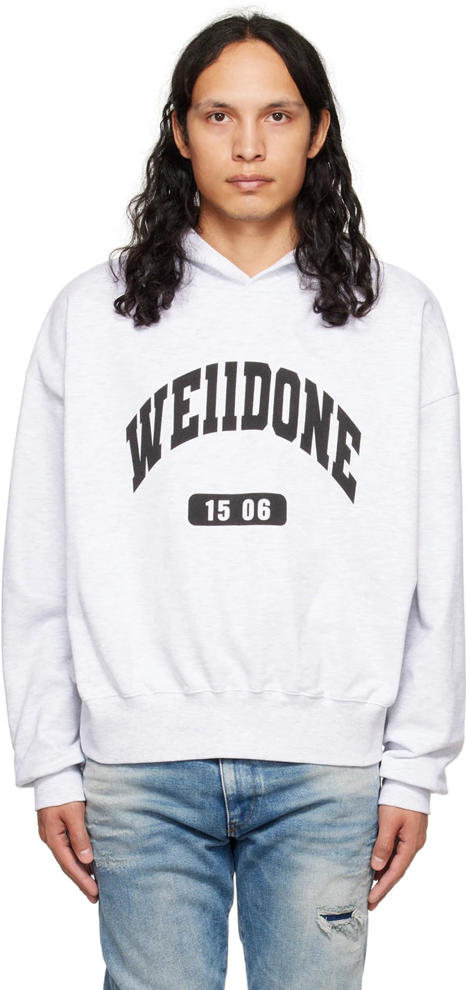 WE11DONE GREY OLD SCHOOL CAMPUS LOGO HOODIE