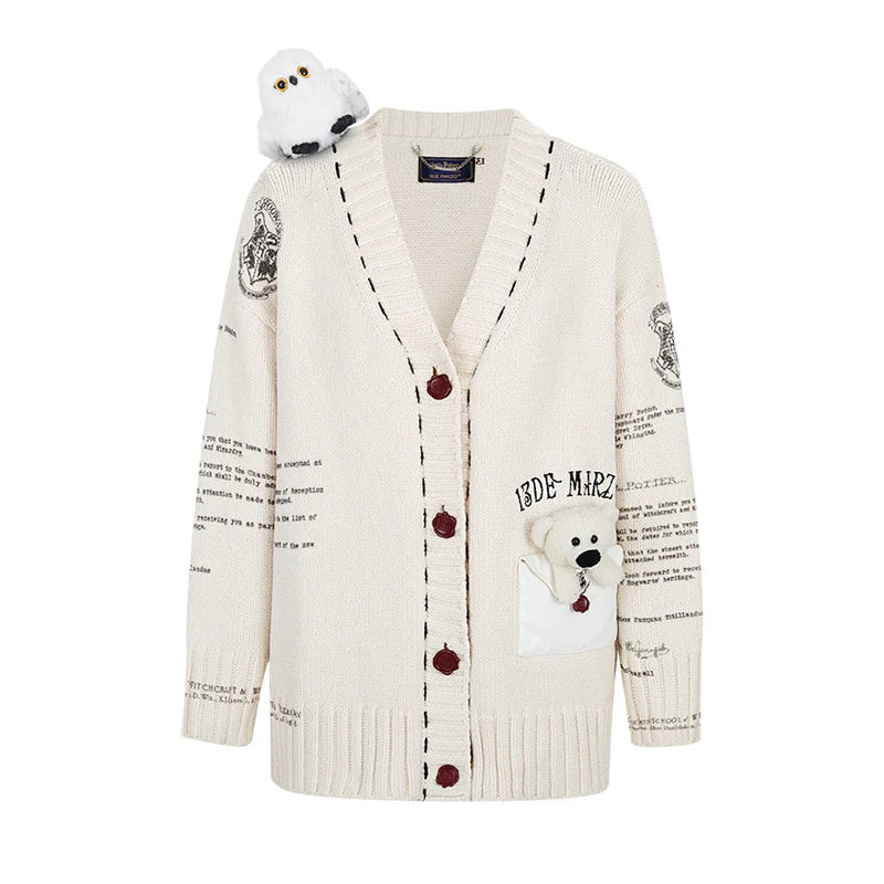 Harry Potter × 13DE MARZO Hedwig Hogwarts Offer Cardigan