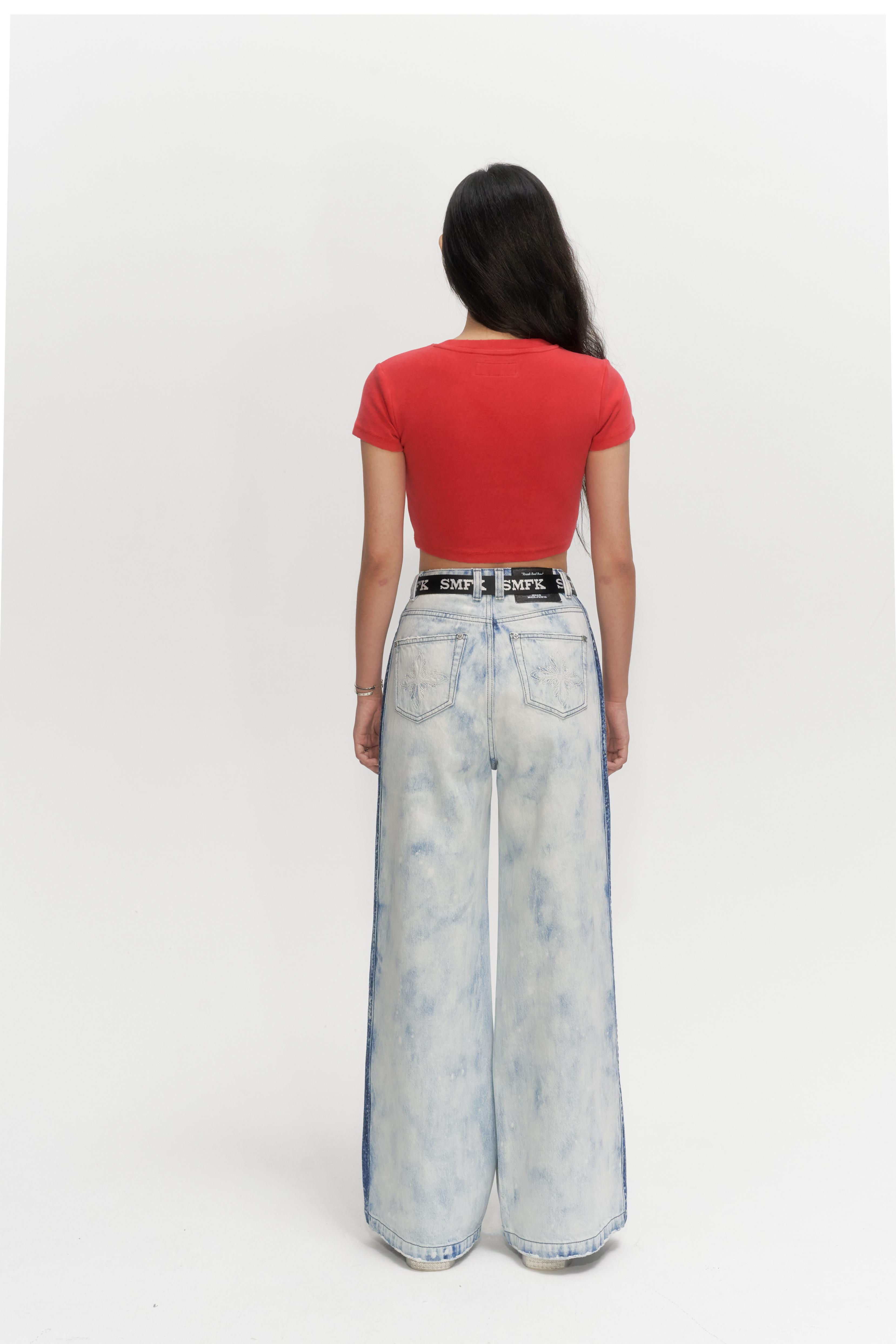 YUSE LEG WARMER SLIM BOOTS CUT DENIM PANTS BLUE