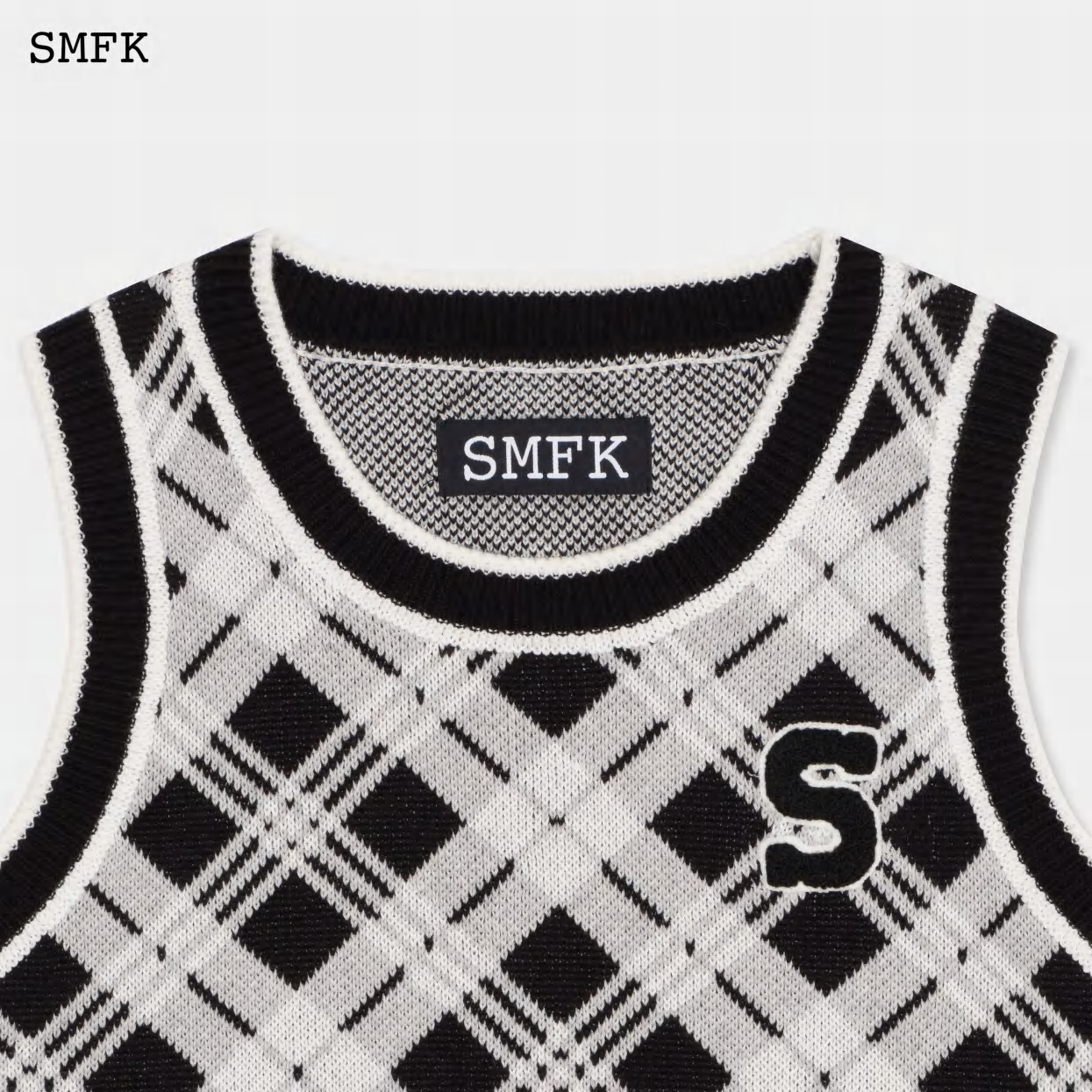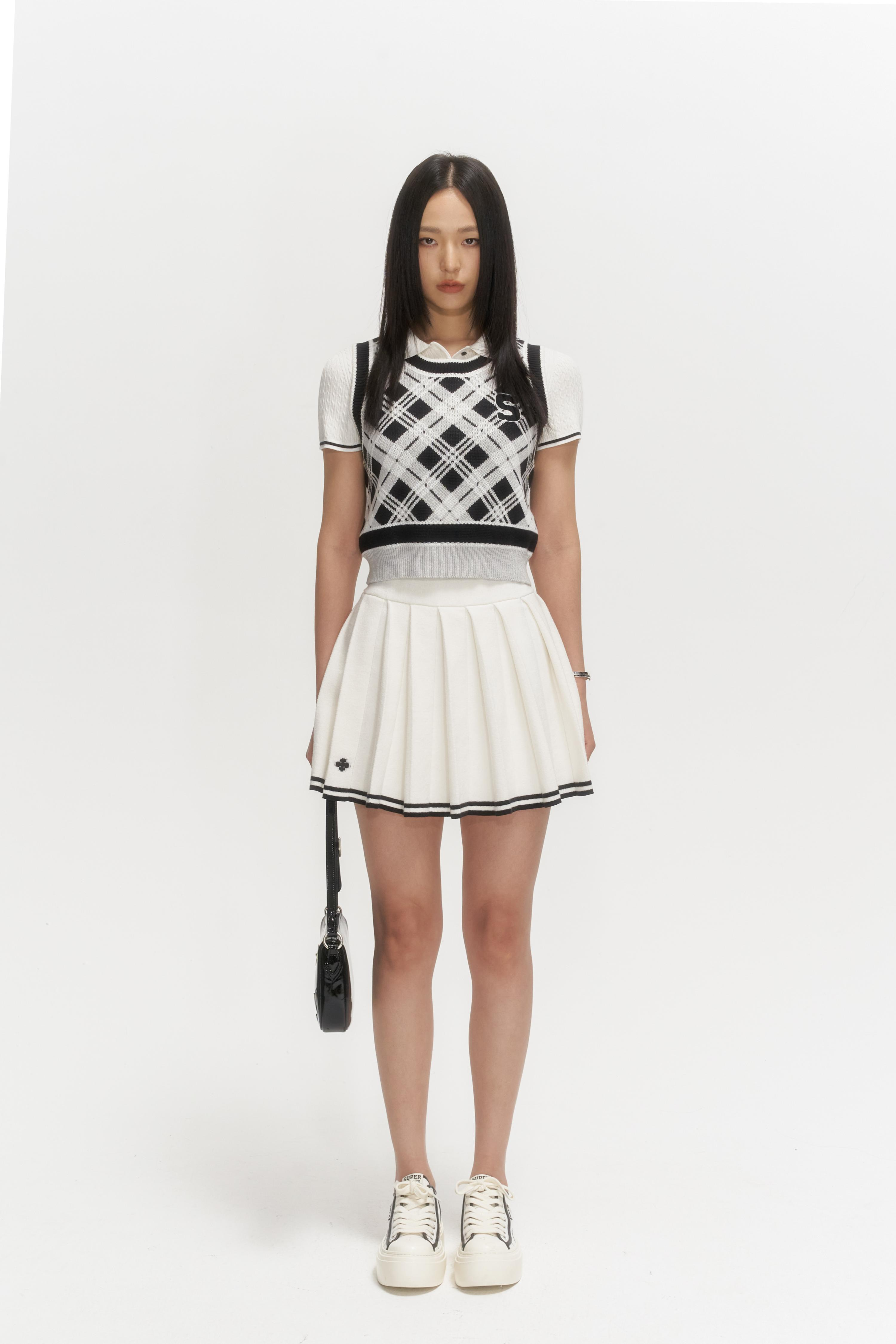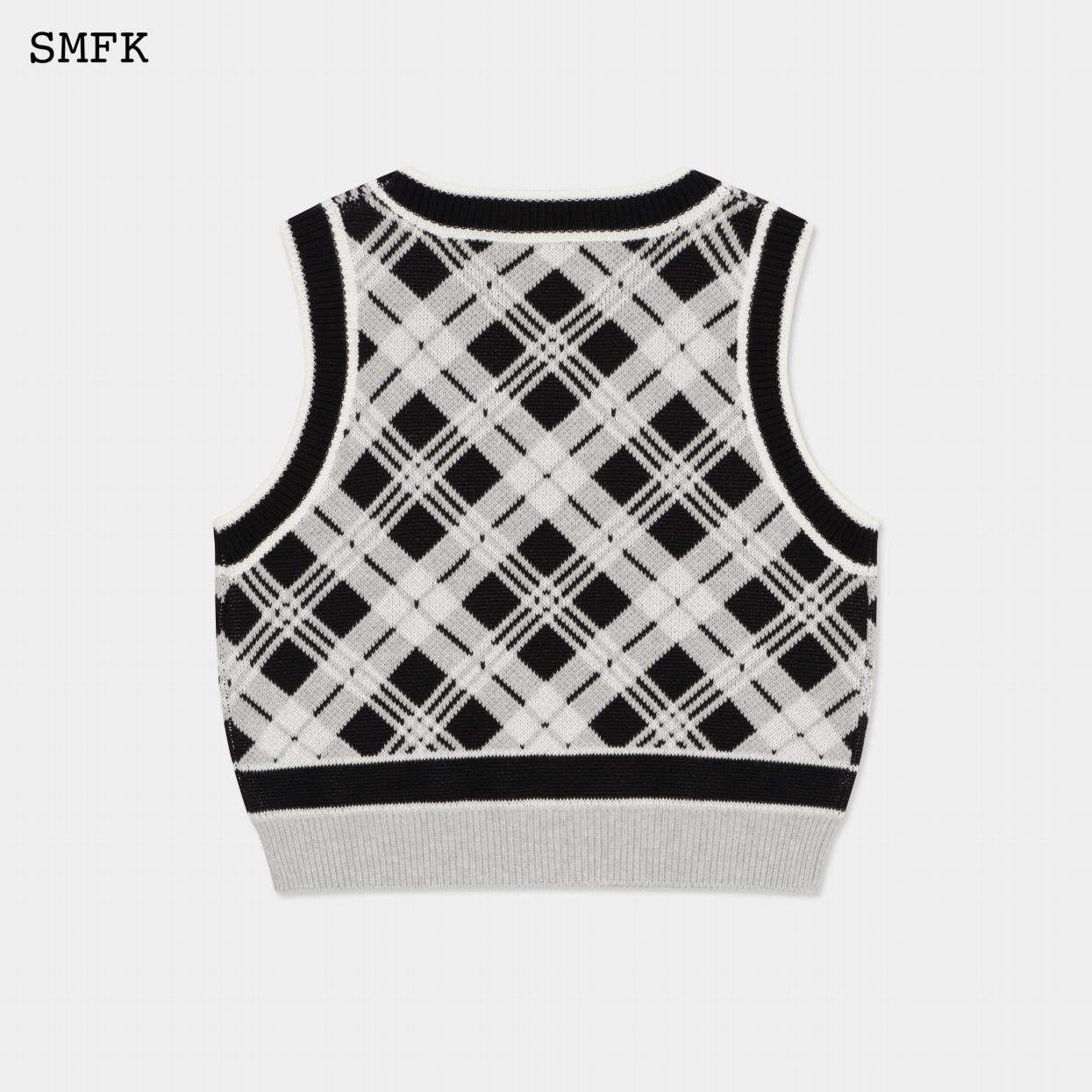 【PRE ORDER】COMPASS VINTAGE LAPEL KNITTED VEST/BLACK AND WHITE UTK013WSP