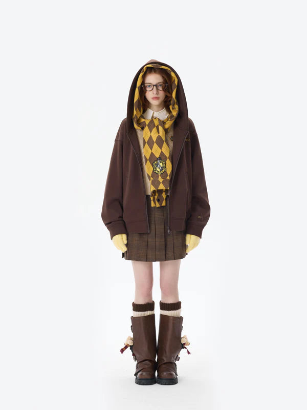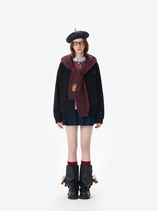 Harry Potter × 13DE MARZO Hogwarts Four Houses Bear Zipper Hoodie