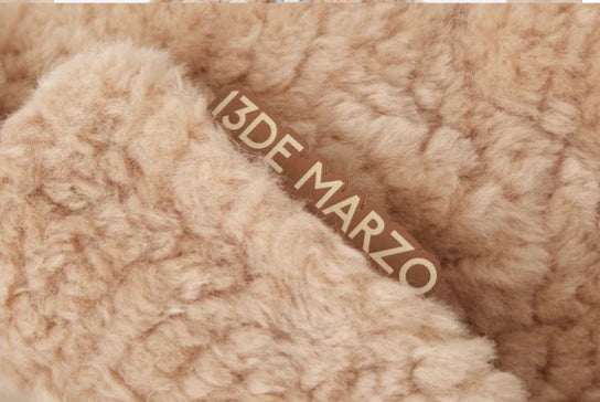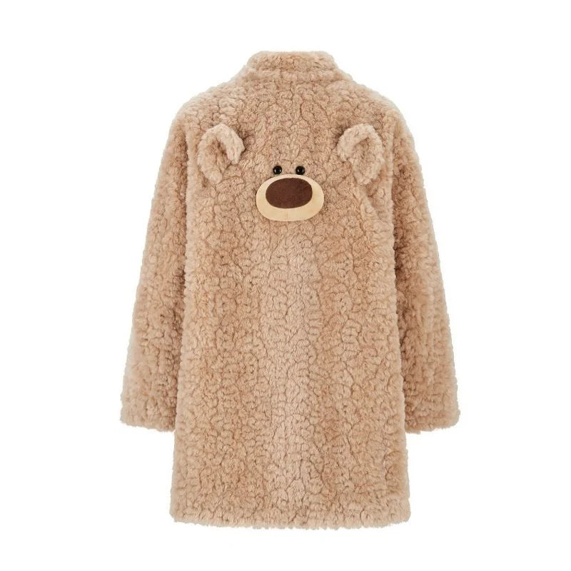 13DE MARZO Bear Fuzzy Long Coat Khaki