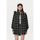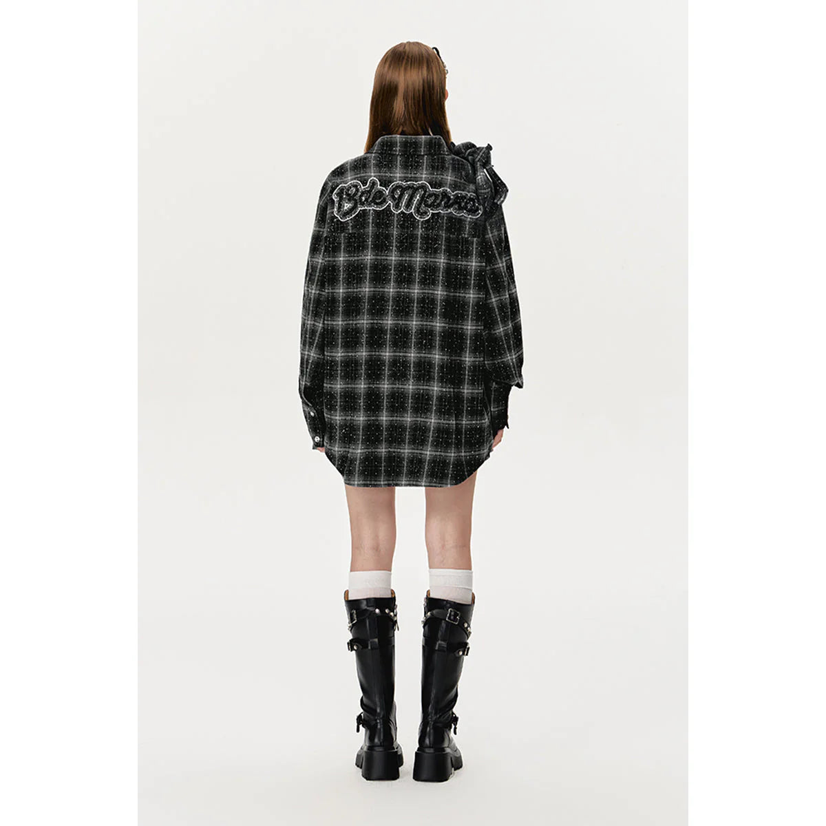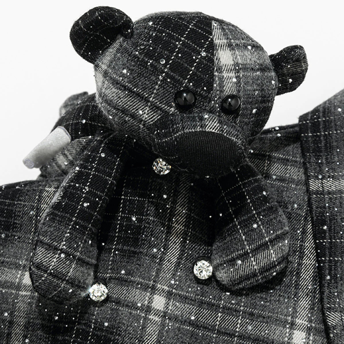 13DE MARZO BEAR RHINESTONE PLAID SHIRT