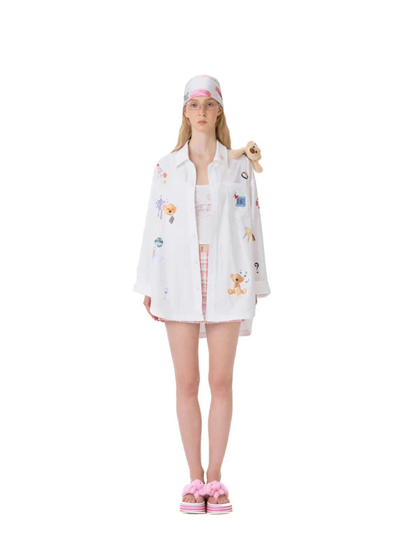 13DE MARZO Bear Stickers Shirt/ WHITE
