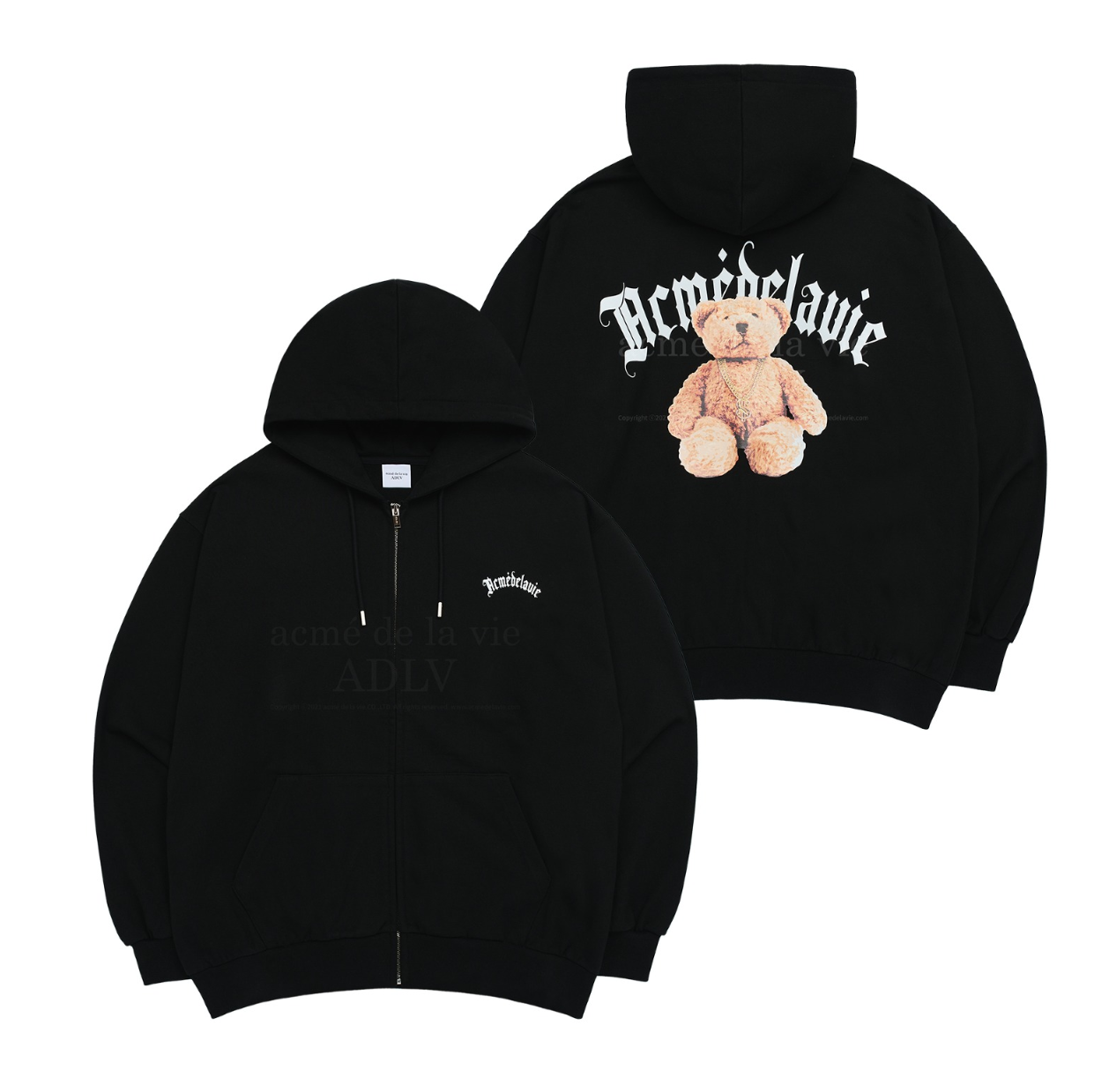 ADLV GOLD CHAIN BEAR DOLL HOODIE ZIP UP BLACK