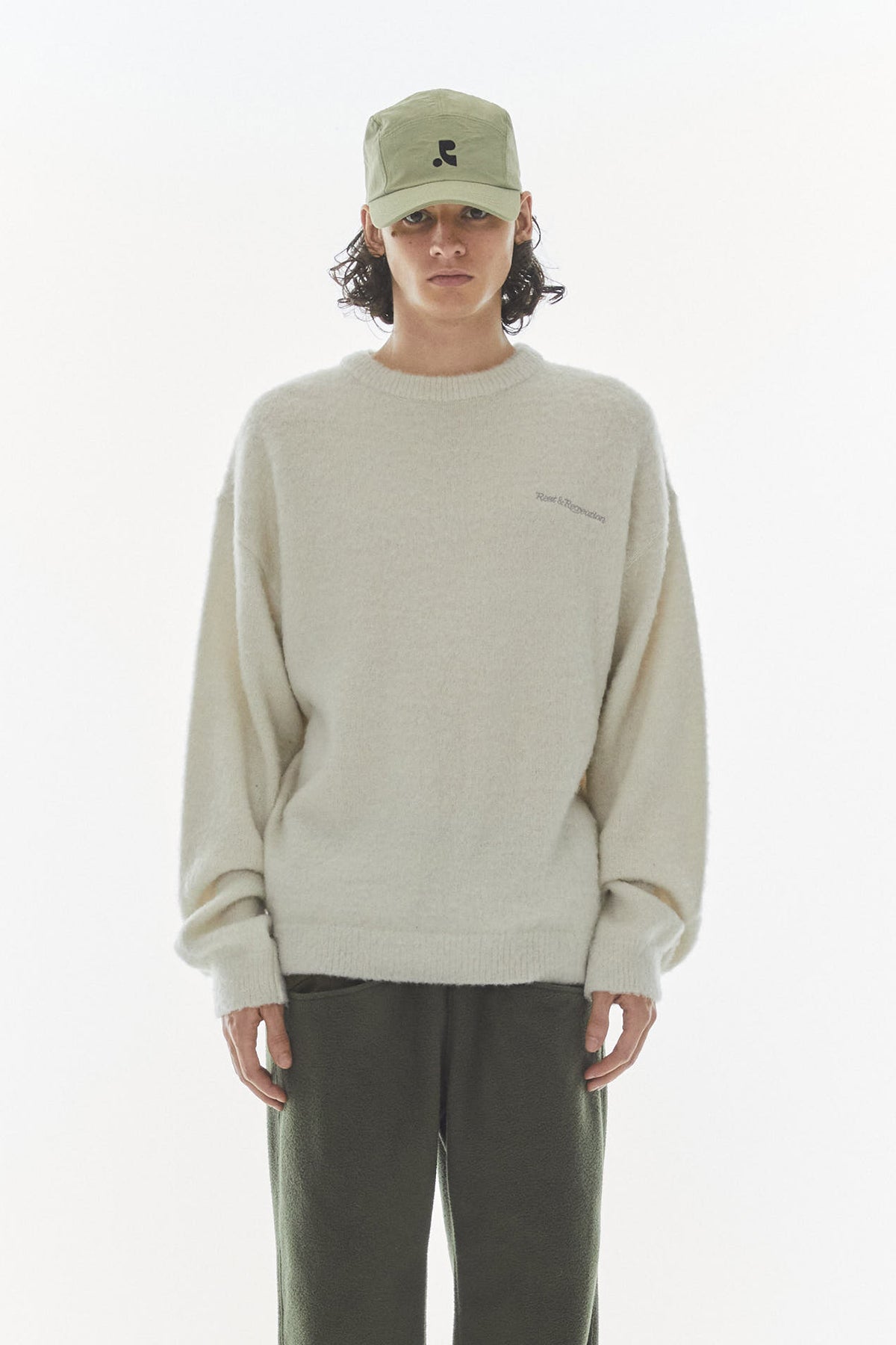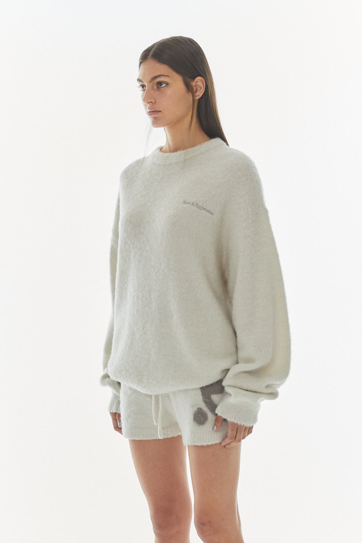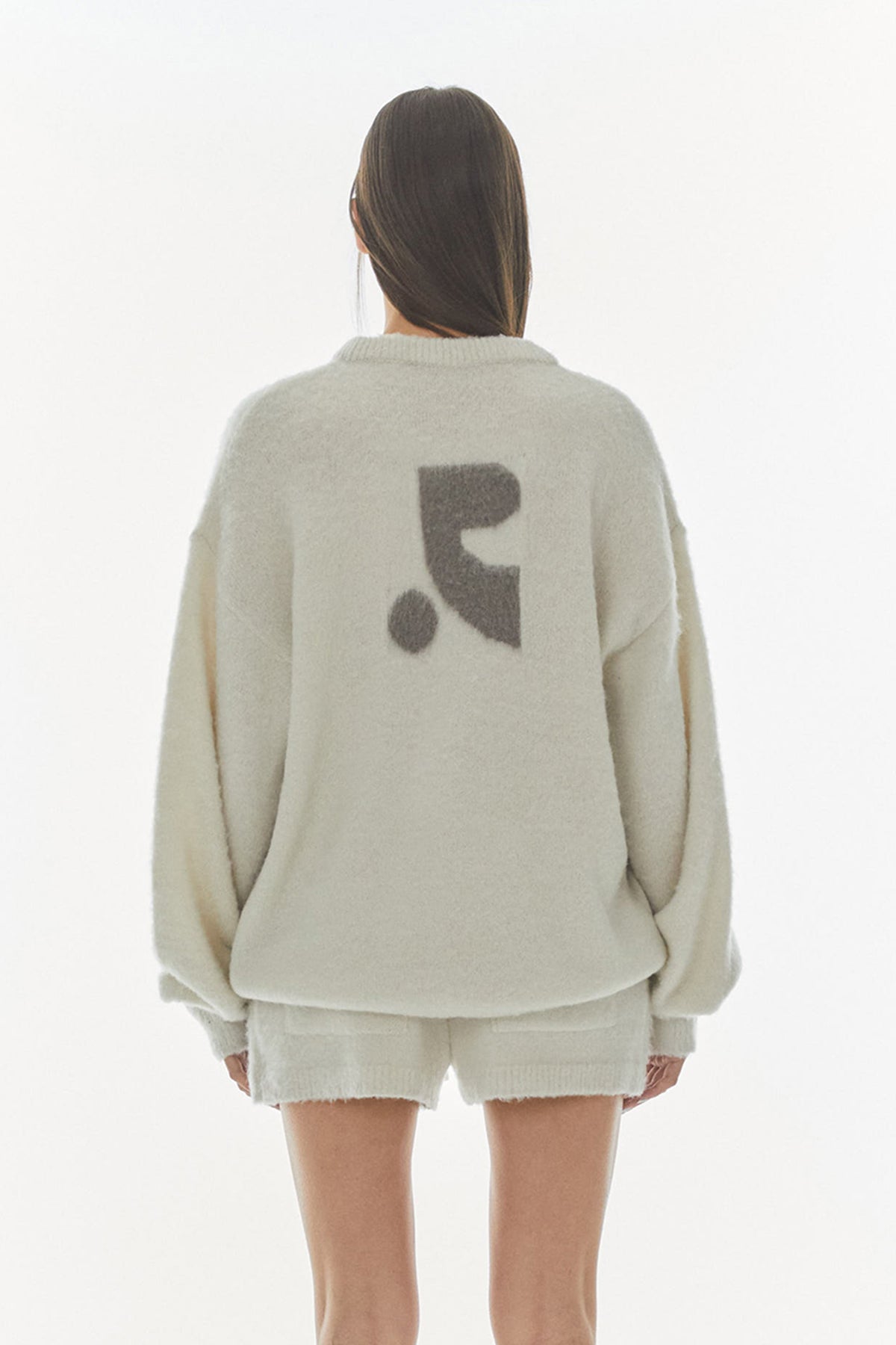 REST&RECREATION HAIRY JACQUARD KNIT TOP - GREY