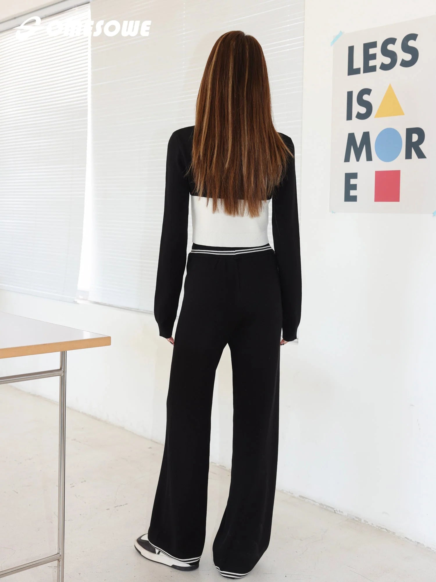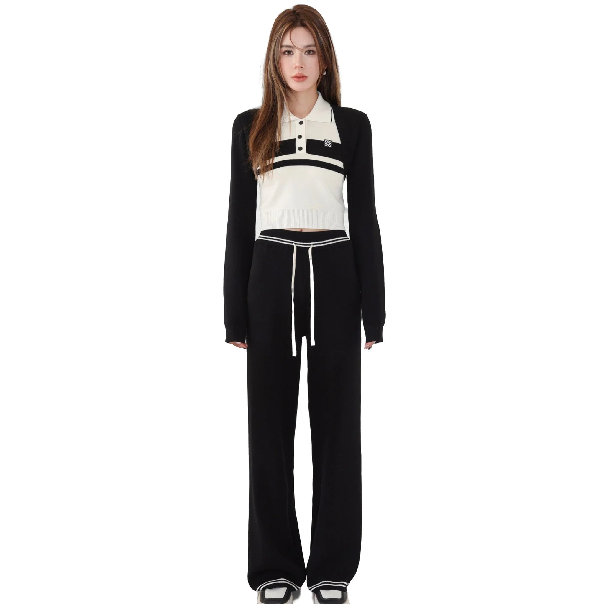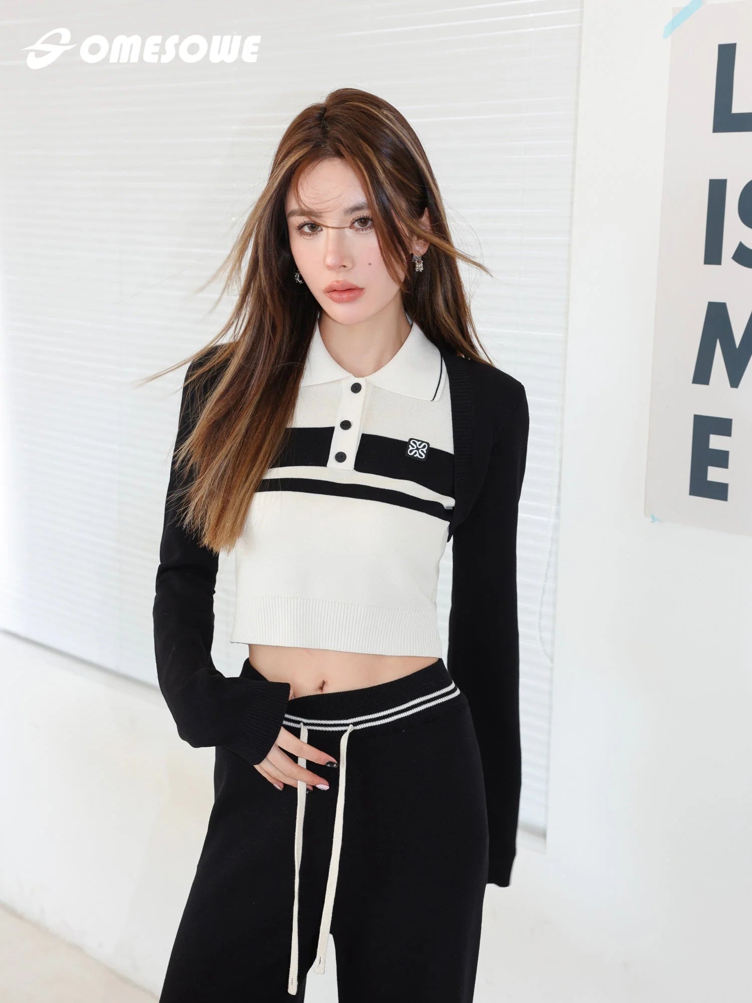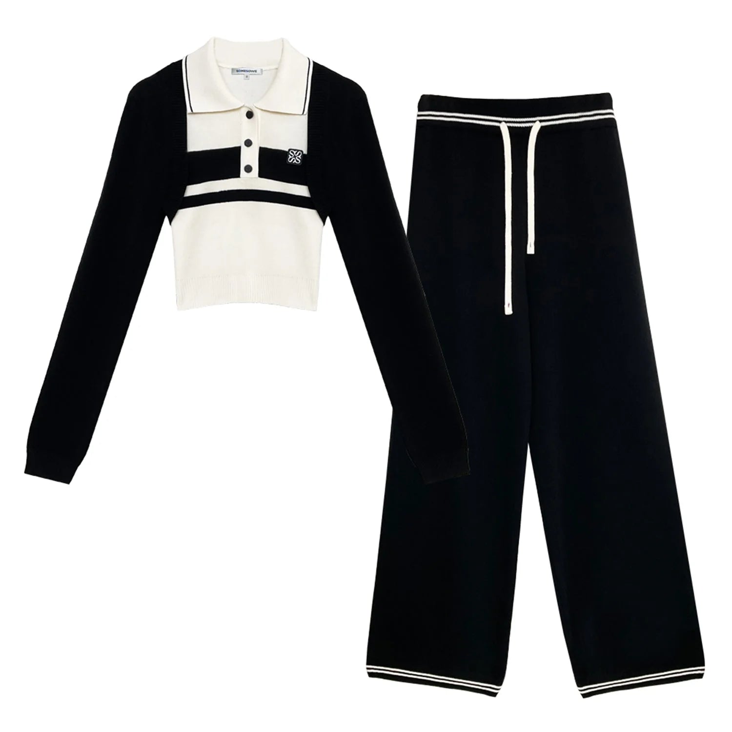 SOMESOWE BLACK AND CREAM POLO KNIT SET