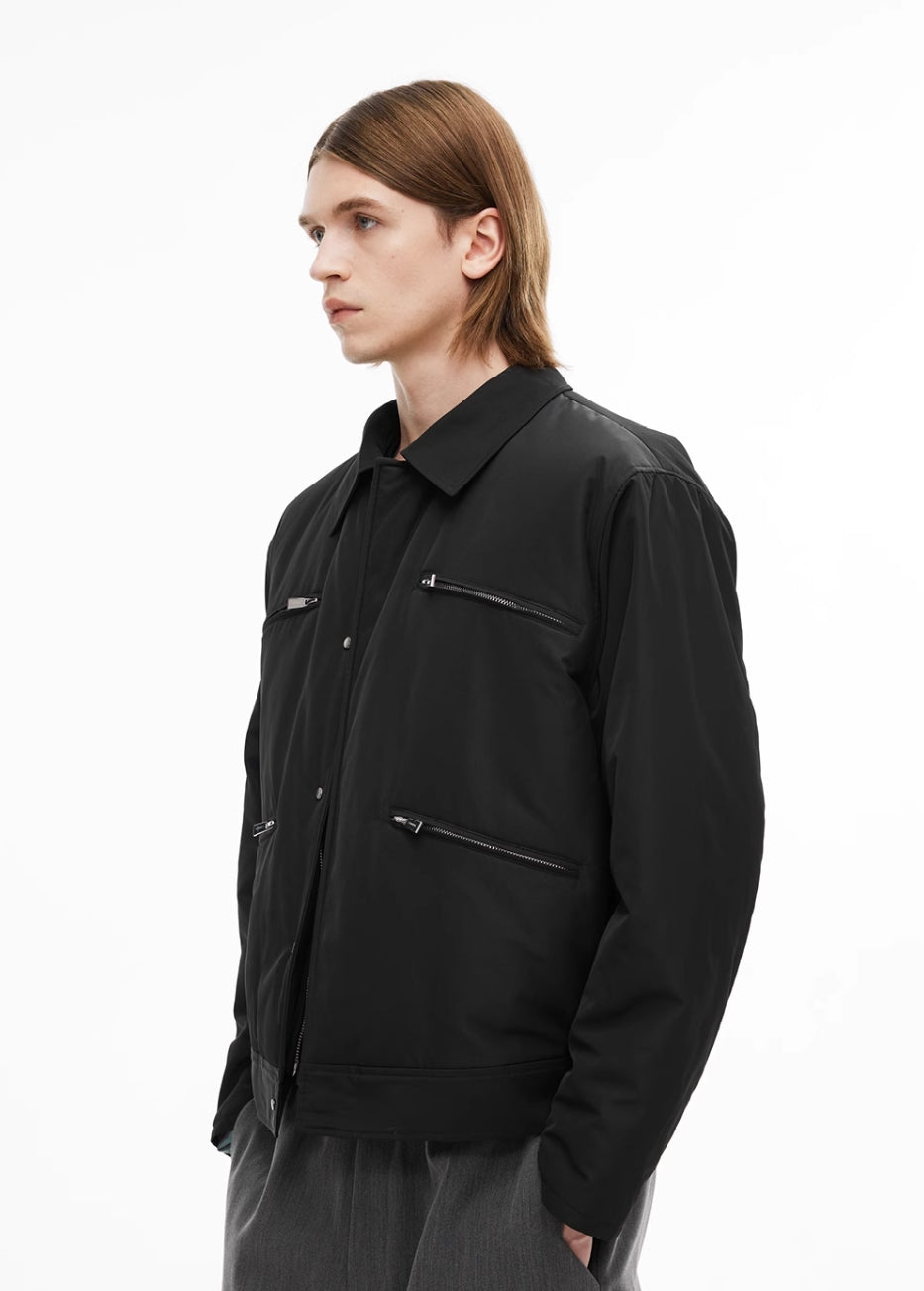 UNAWARES. COTTON JACKET WITH METAL ZIPPER INLAID SQUARE COLLAR CLIP