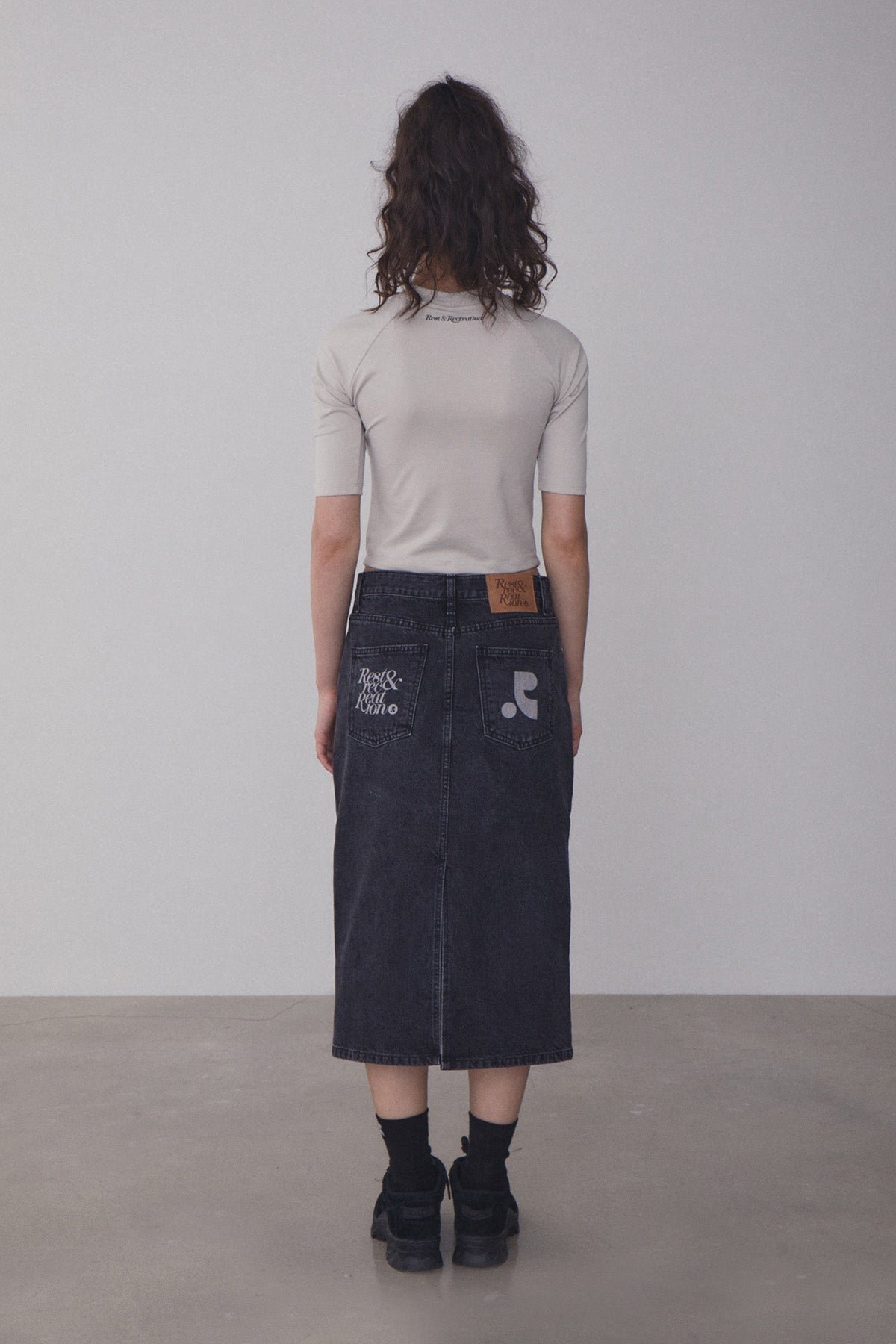REST&RECREATION RR DENIM MIDI SKIRT - BLACK