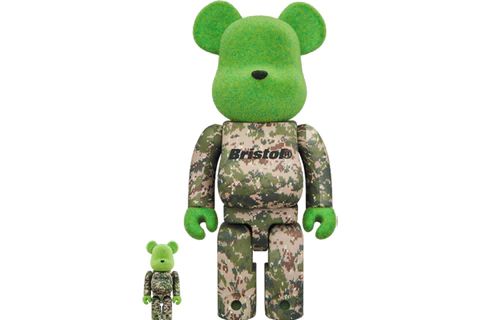 BEARBRICK X READYMADE X FCREAL BRISTOL 100% & 400% SET GREEN MULTICOLOR