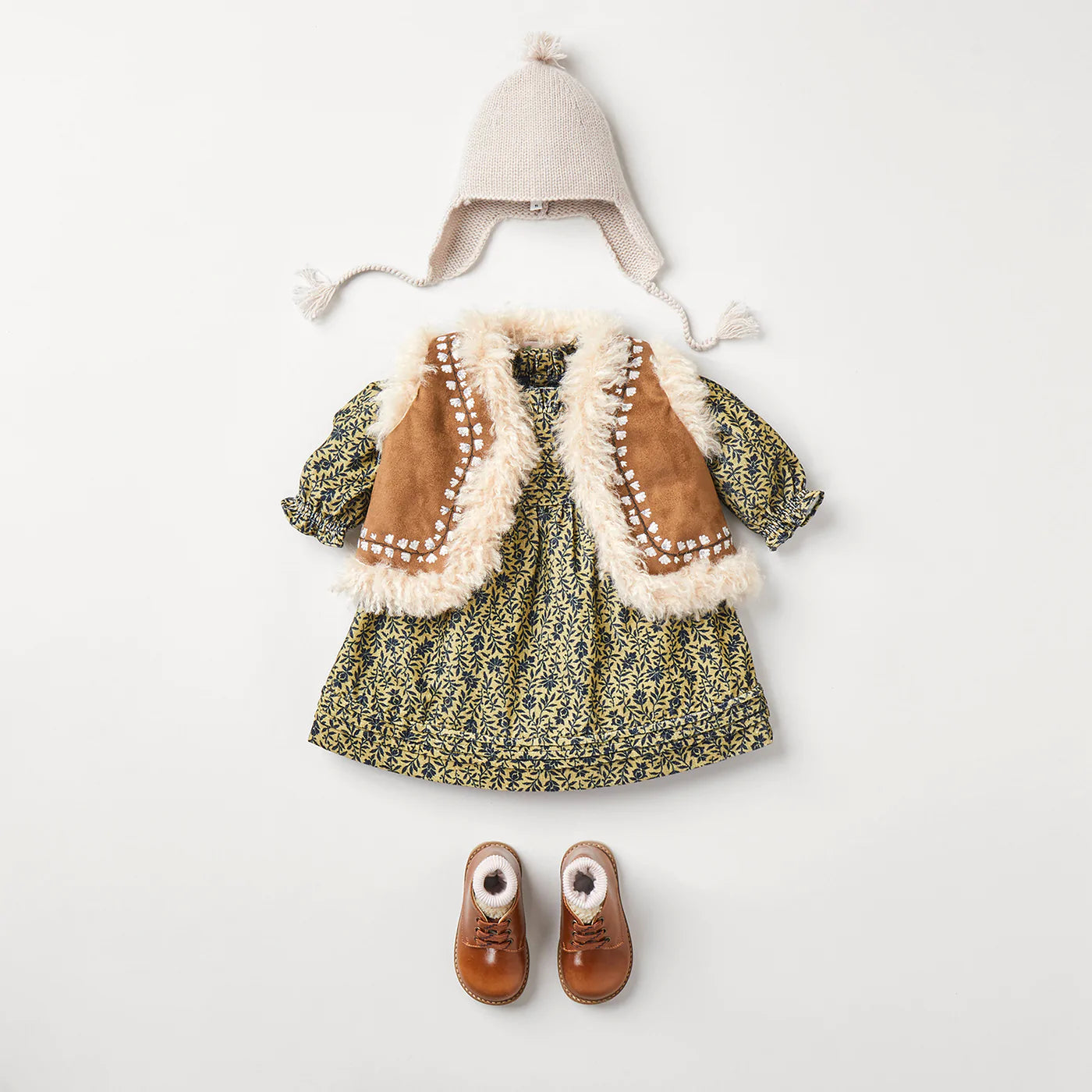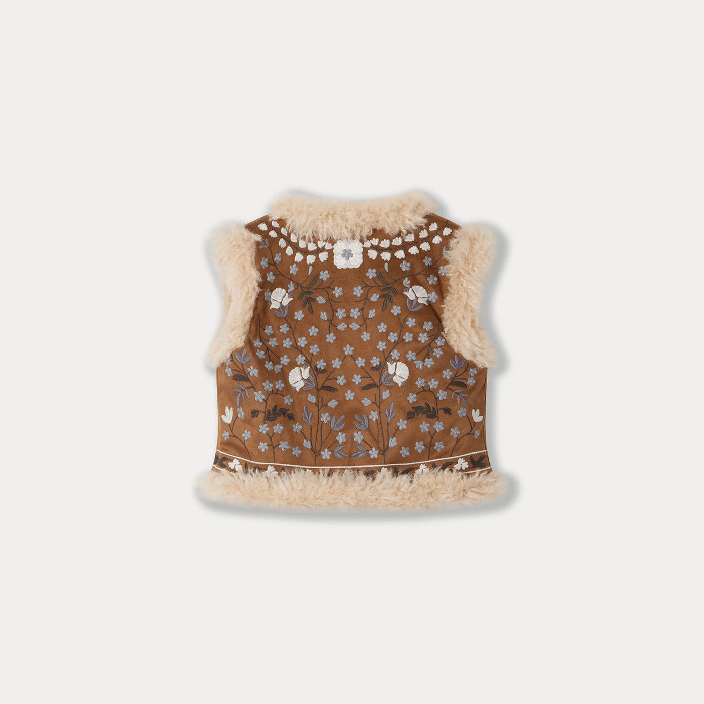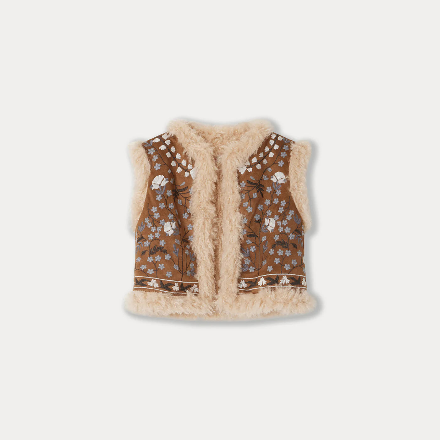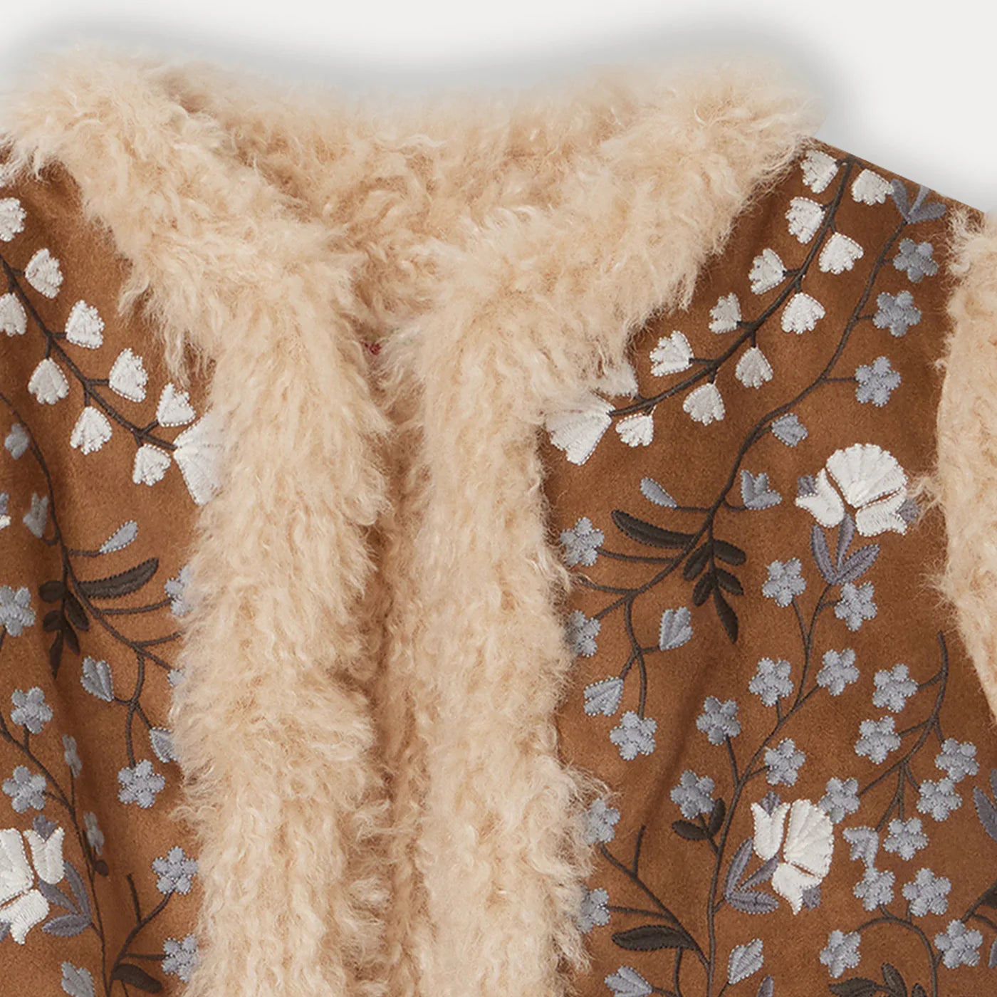 The Jalou gilet for babies is a perfect example of Bonpoint's expertise with its elegant, hand-embroidered detail. This straight-cut model features a faux fur, fleece-effect lining and trim.