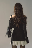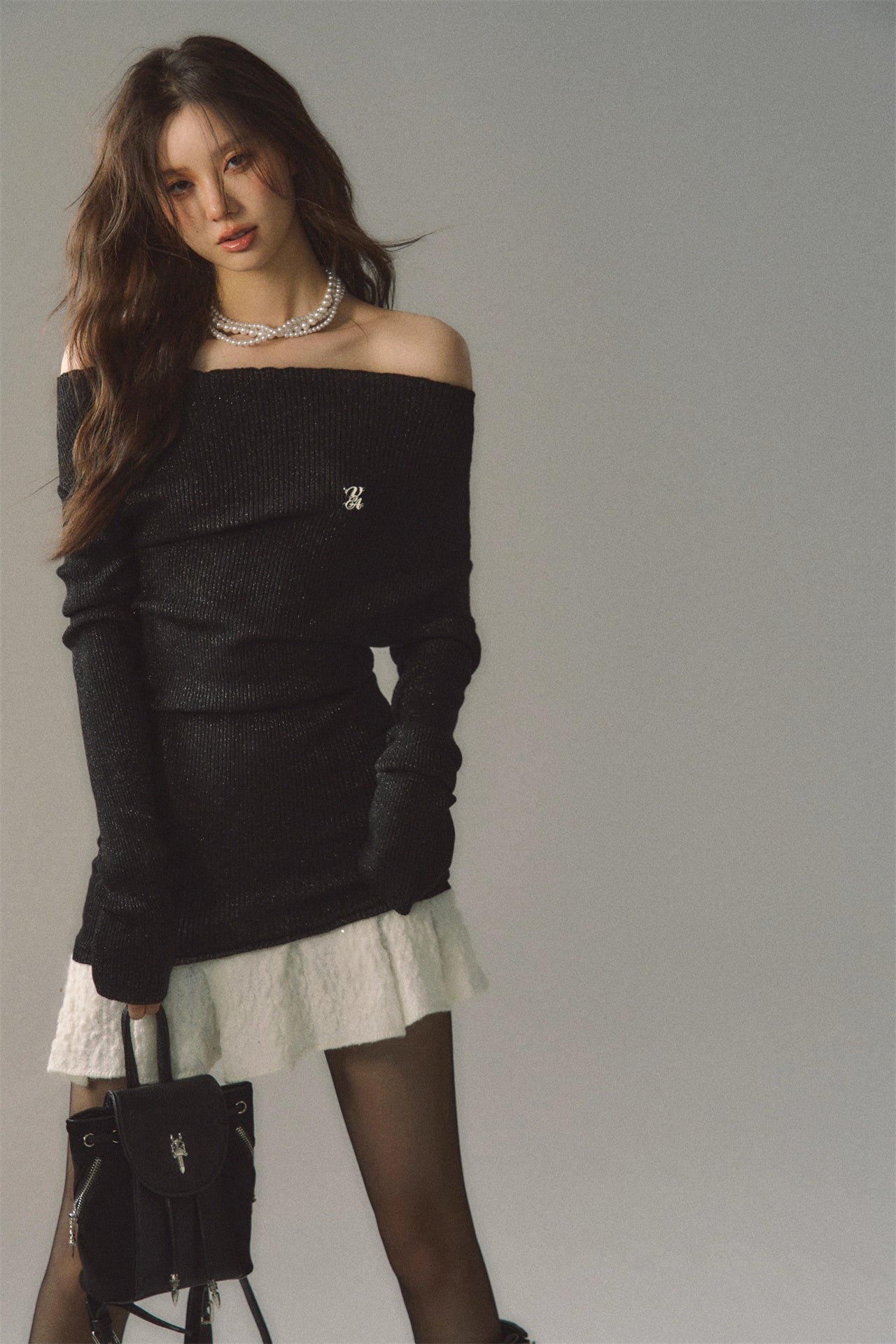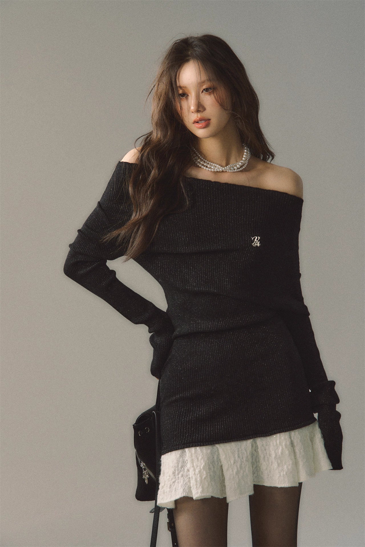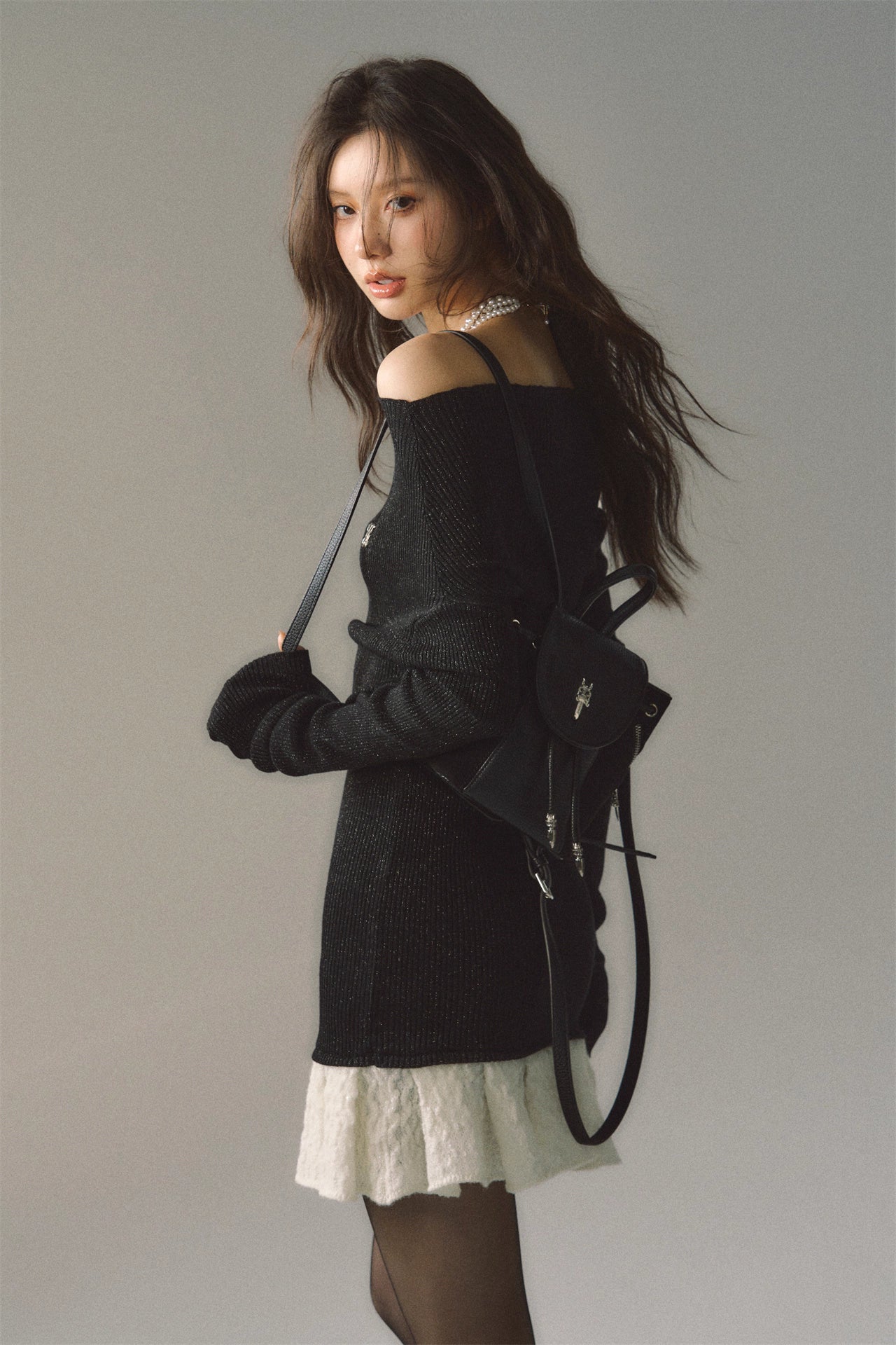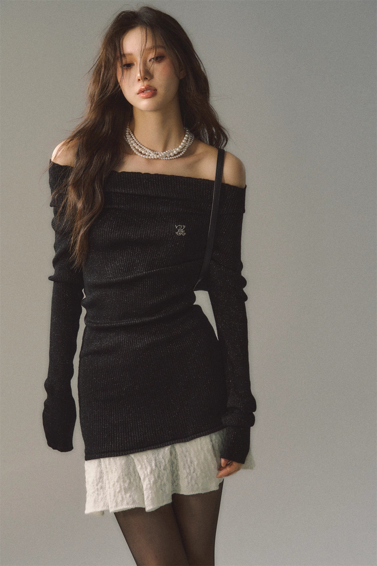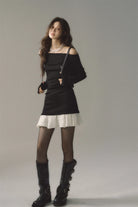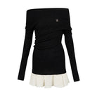 VIA PITTI Asymmetric Off-Shoulder Color-Block Knit Dress - Black