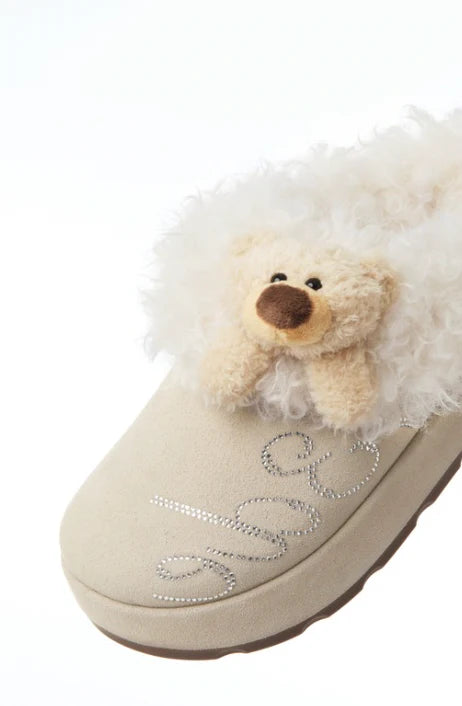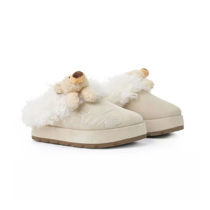 13DE MARZO Logo Fuzzy Snow Slippers Beige
