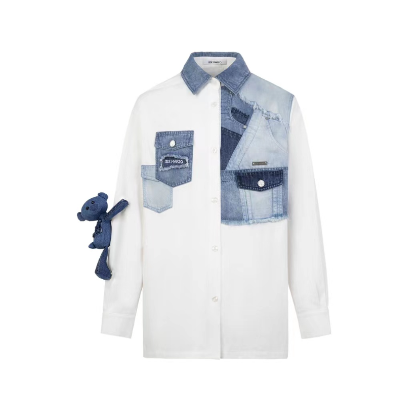 13 DE MARZO DECONSTRUCTION DENIM PATCH SHIRT WHITE