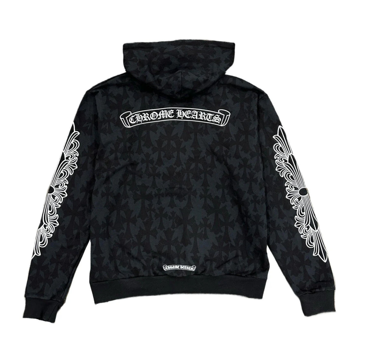 CHROME HEARTS CEMETERY CROSS ALL OVER PRINT LOGO ZIP UP HOODIE BLACK