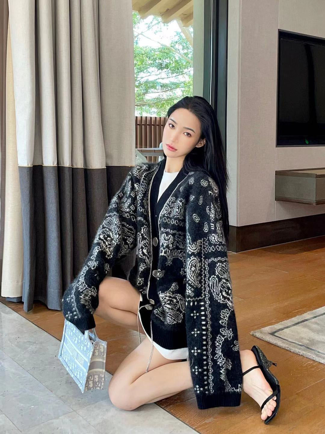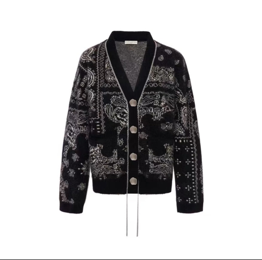 DIANA VEVINA BLACK CHAIN TOTEM DESIGN V-NECK SWEATER CARDIGAN