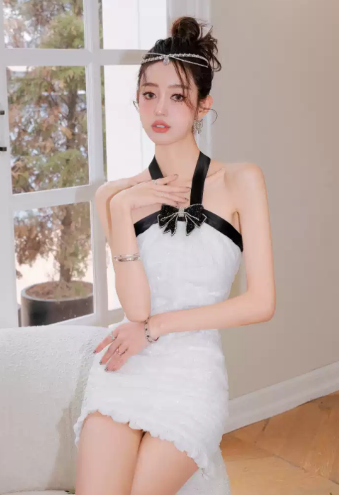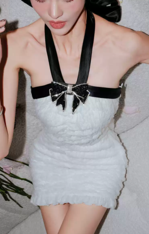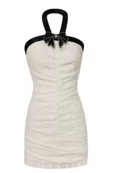 DIANA VEVINA WHITE NECKTIE WITH DIAMOND BOW